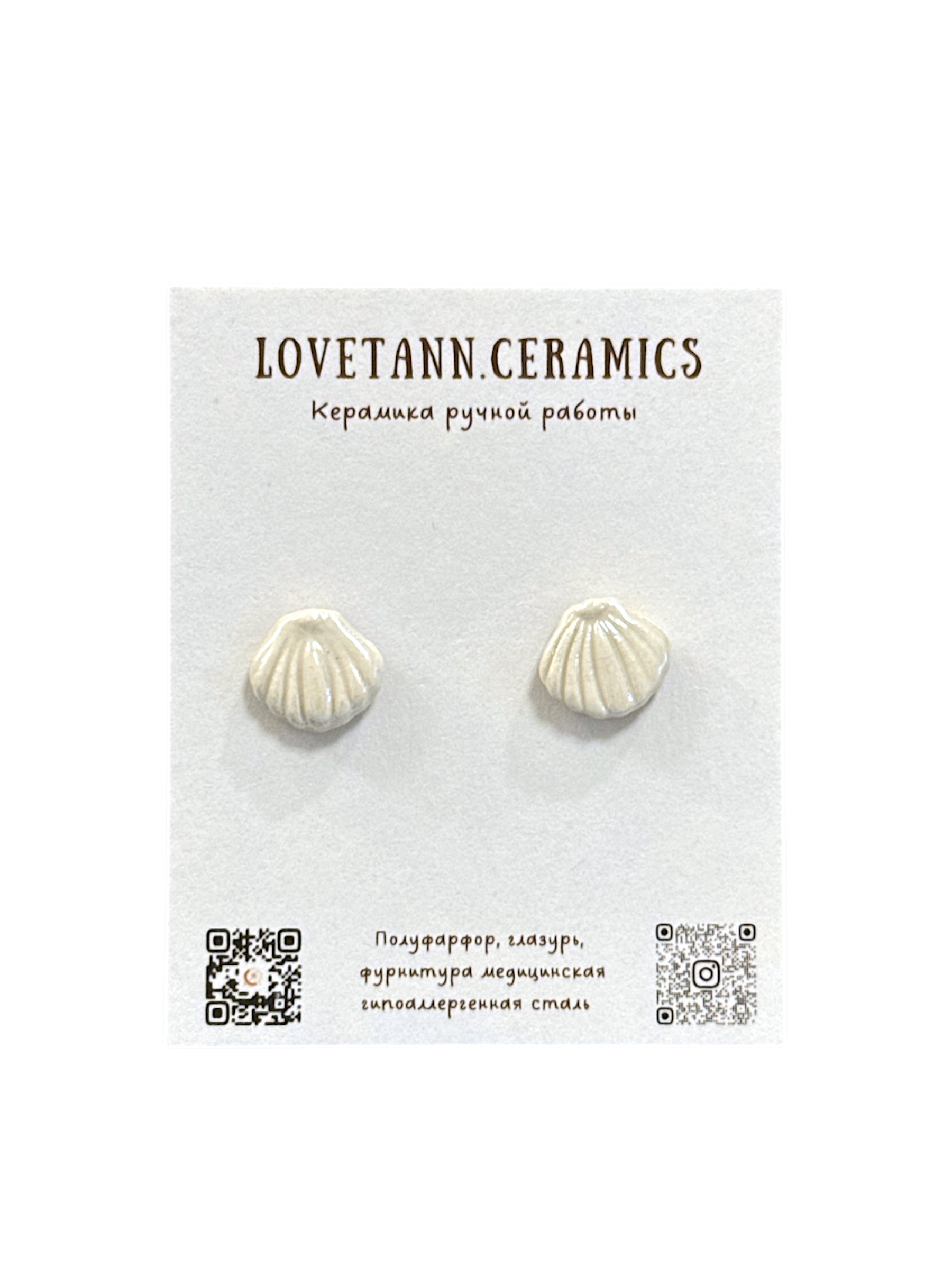Серёжки-гвоздики «Перламутровые ракушки», полуфарфор