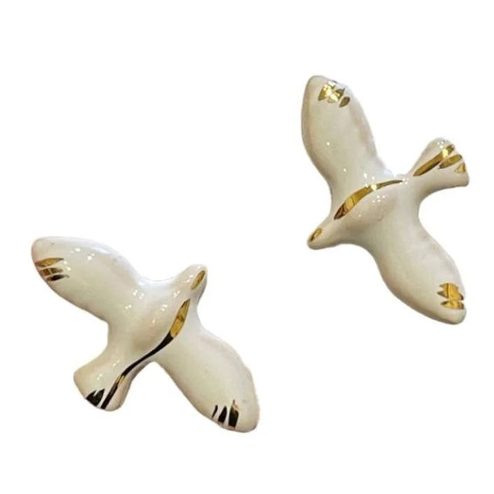 Лёгкие серёжки-гвоздики птички - символ лёгкости, мира, свободы, движения вперёд! Благодаря белому цвету и изящной форме, они хорошо комплектуются с изделиями из благородных металлов. Серёжки можно надеть и на официальную встречу, прогулку или праздничную вечеринку.