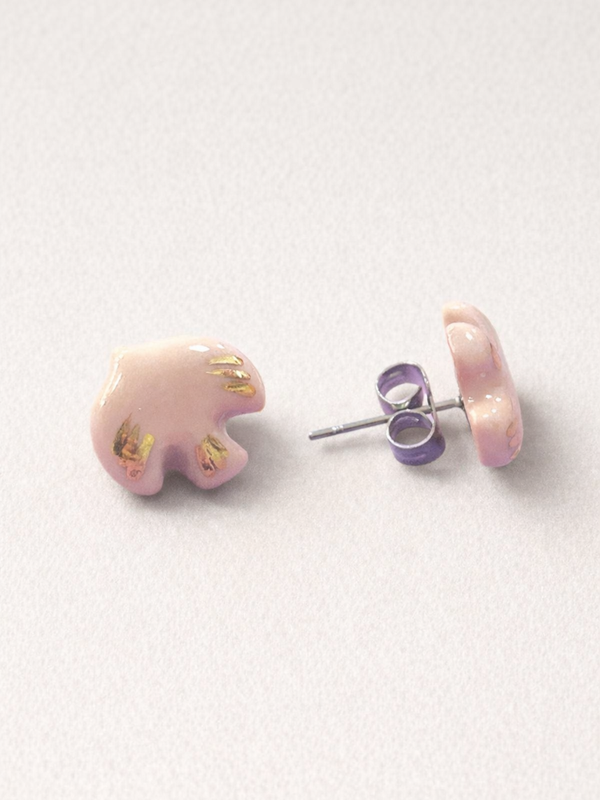 Серёжки-гвоздики «Птицы», фарфор, розово-золотистые