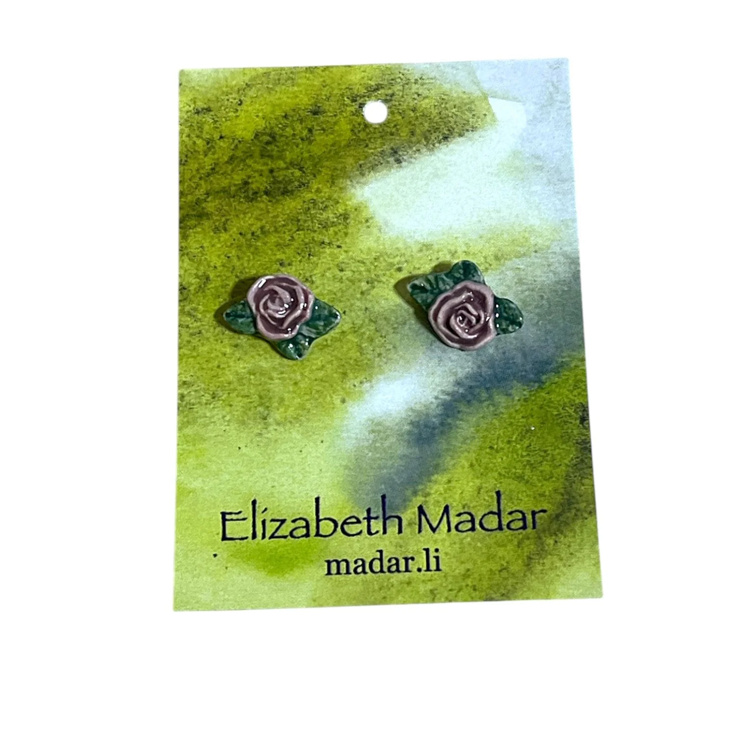 Серёжки-гвоздики Elizabeth Madar Розочки, керамика, розовые