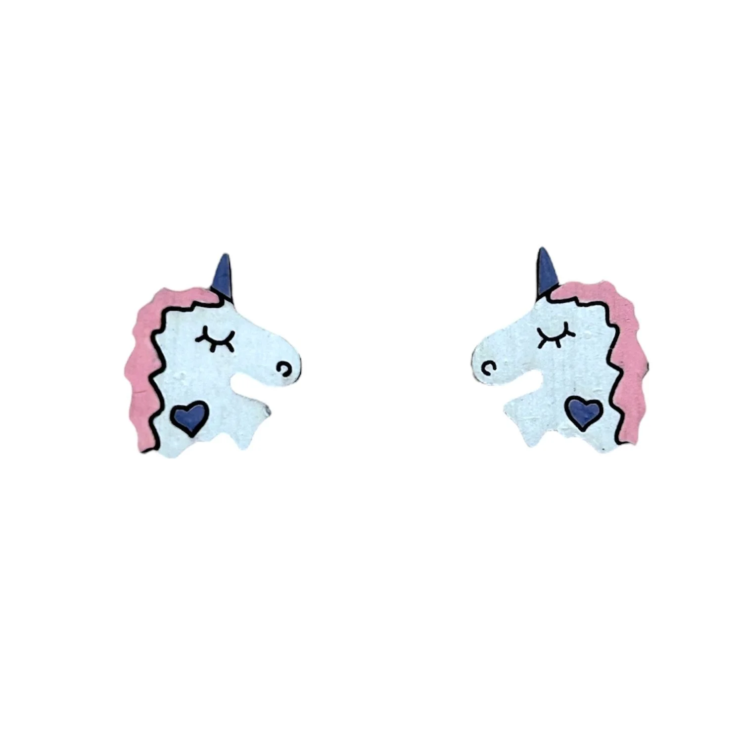 Серёжки-гвоздики ОКподолинс «Единорожки», дерево, розовые
