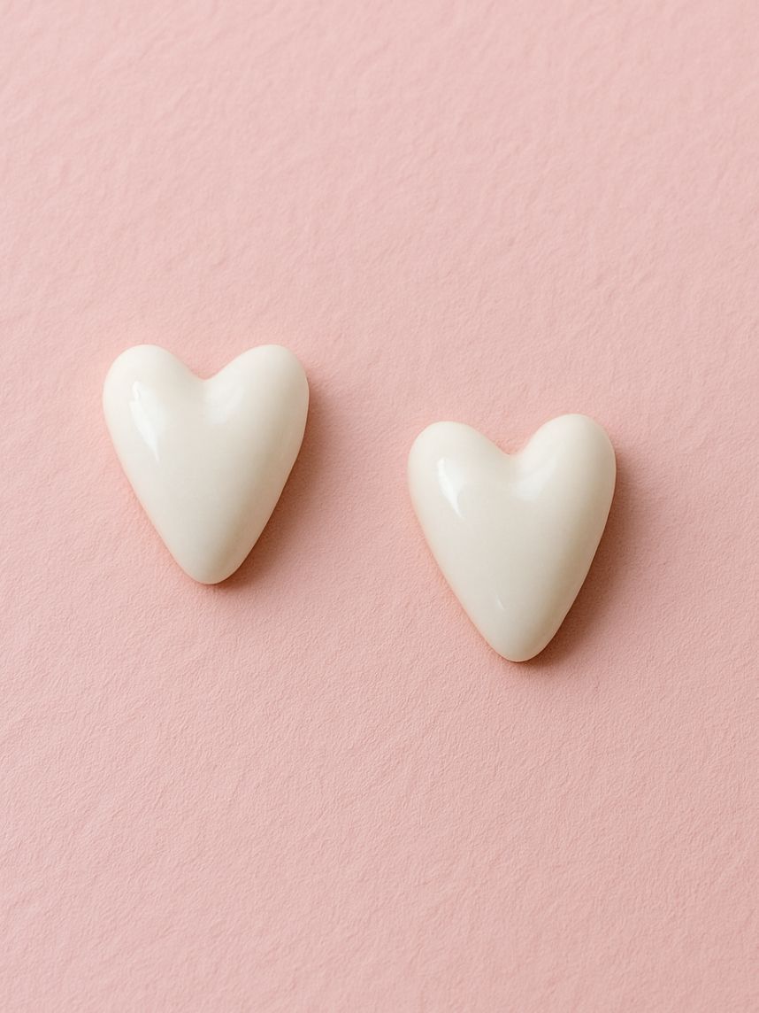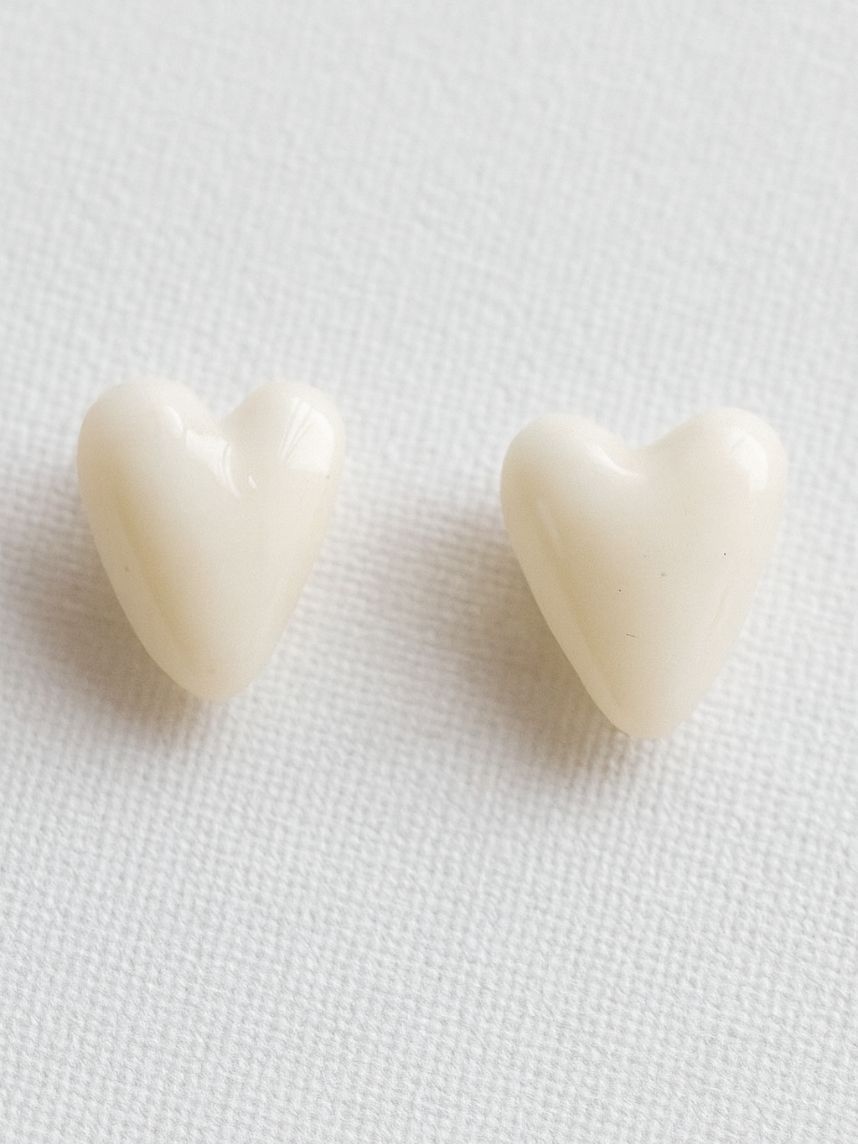 Серёжки-гвоздики Сердечки, полимерная глина, белые
