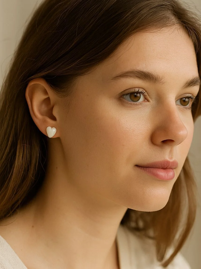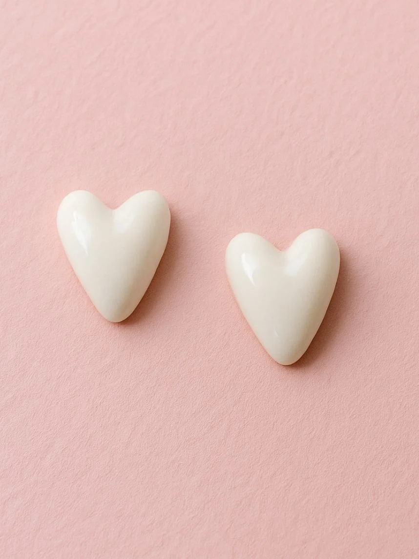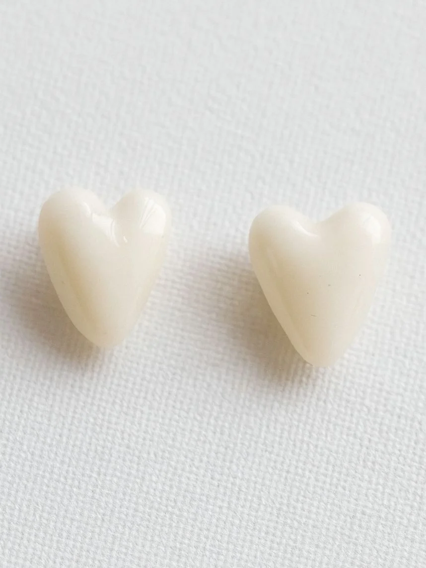 Серёжки-гвоздики Радость Рядом Сердечки, полимерная глина, белые