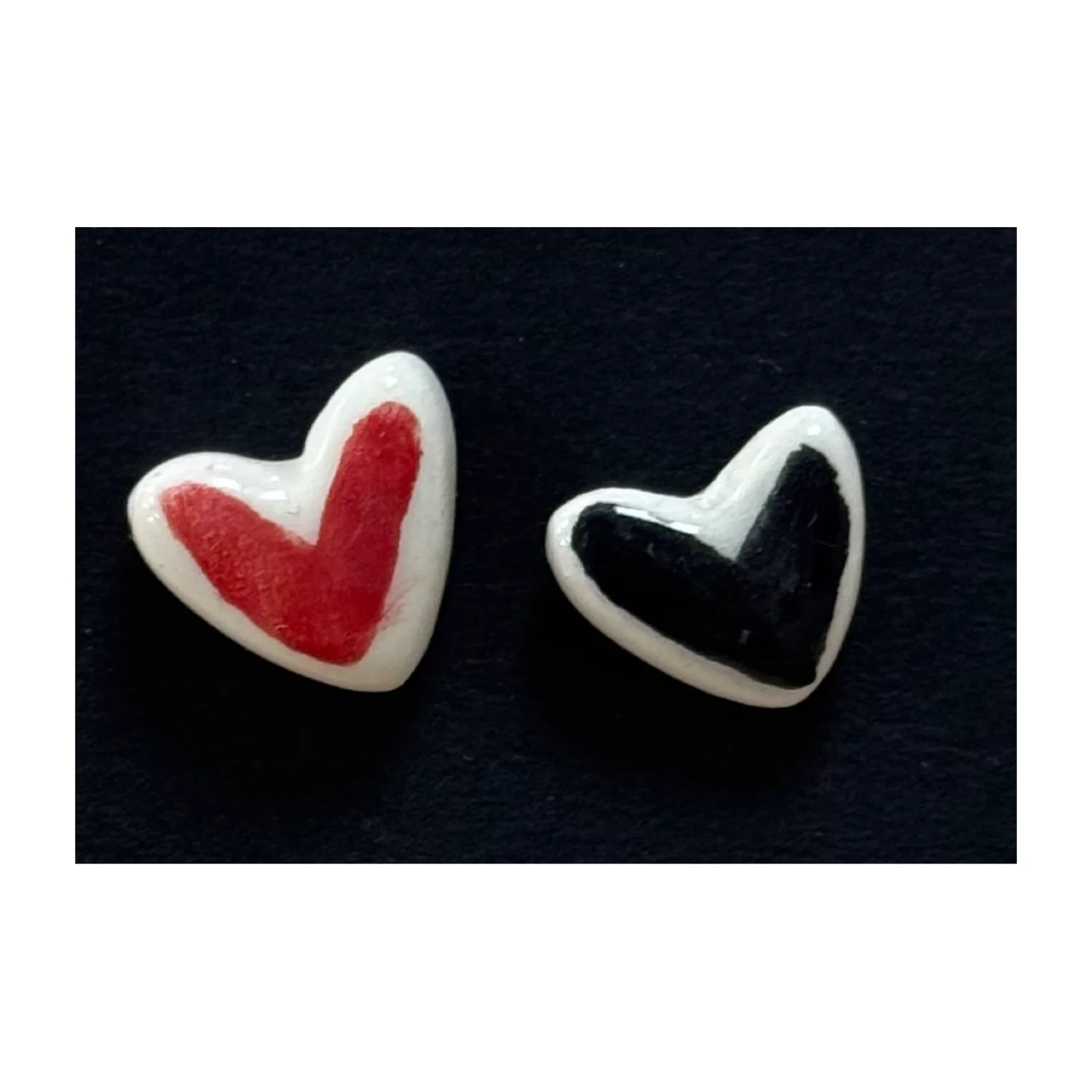 Серёжки-гвоздики ручной работы Мария Гордеева Сердечки, керамика, красно-чёрные