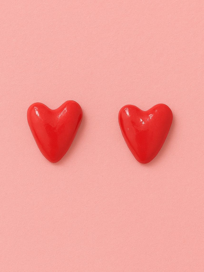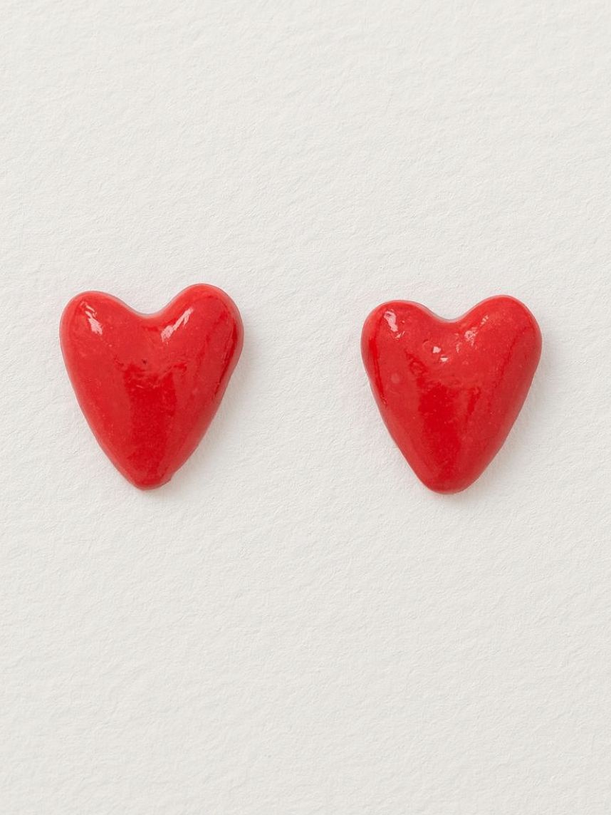 Серёжки-гвоздики Сердечки, полимерная глина, красные