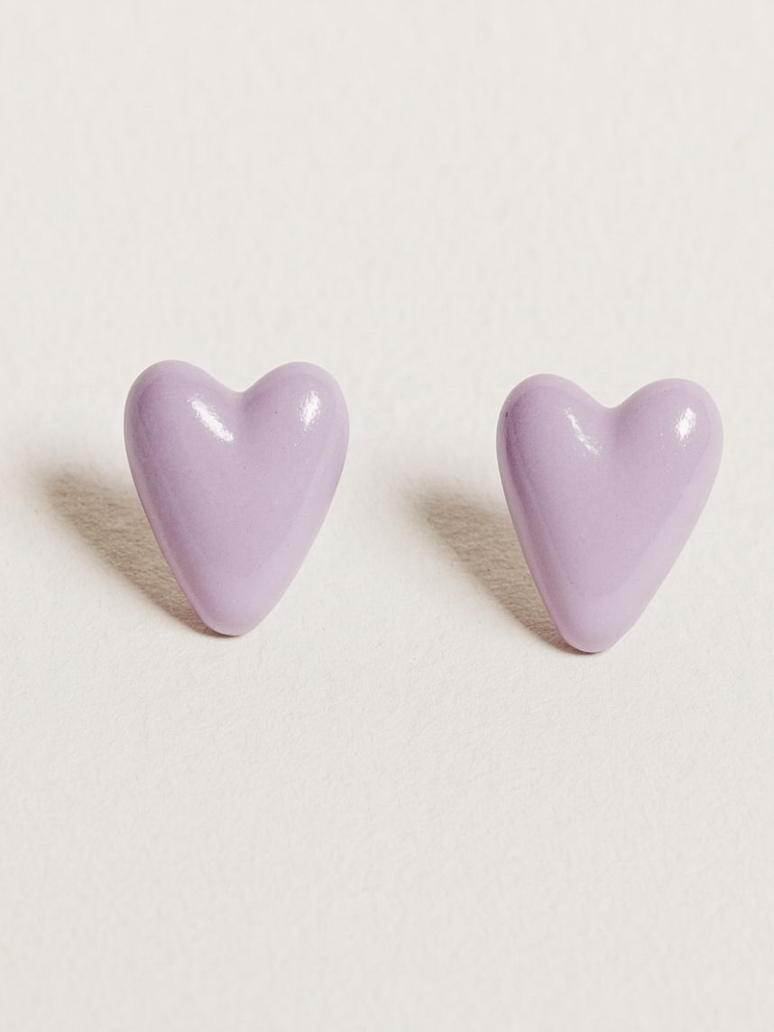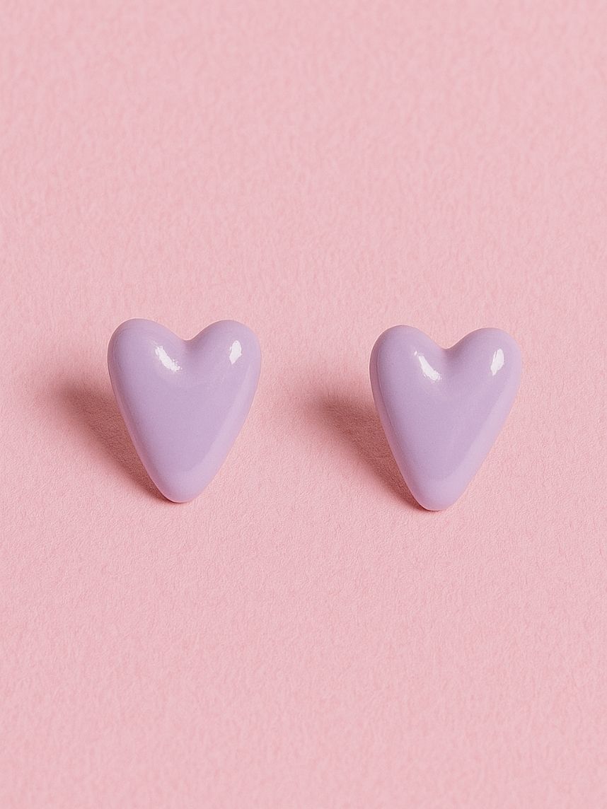 Серёжки-гвоздики Сердечки, полимерная глина, лиловые