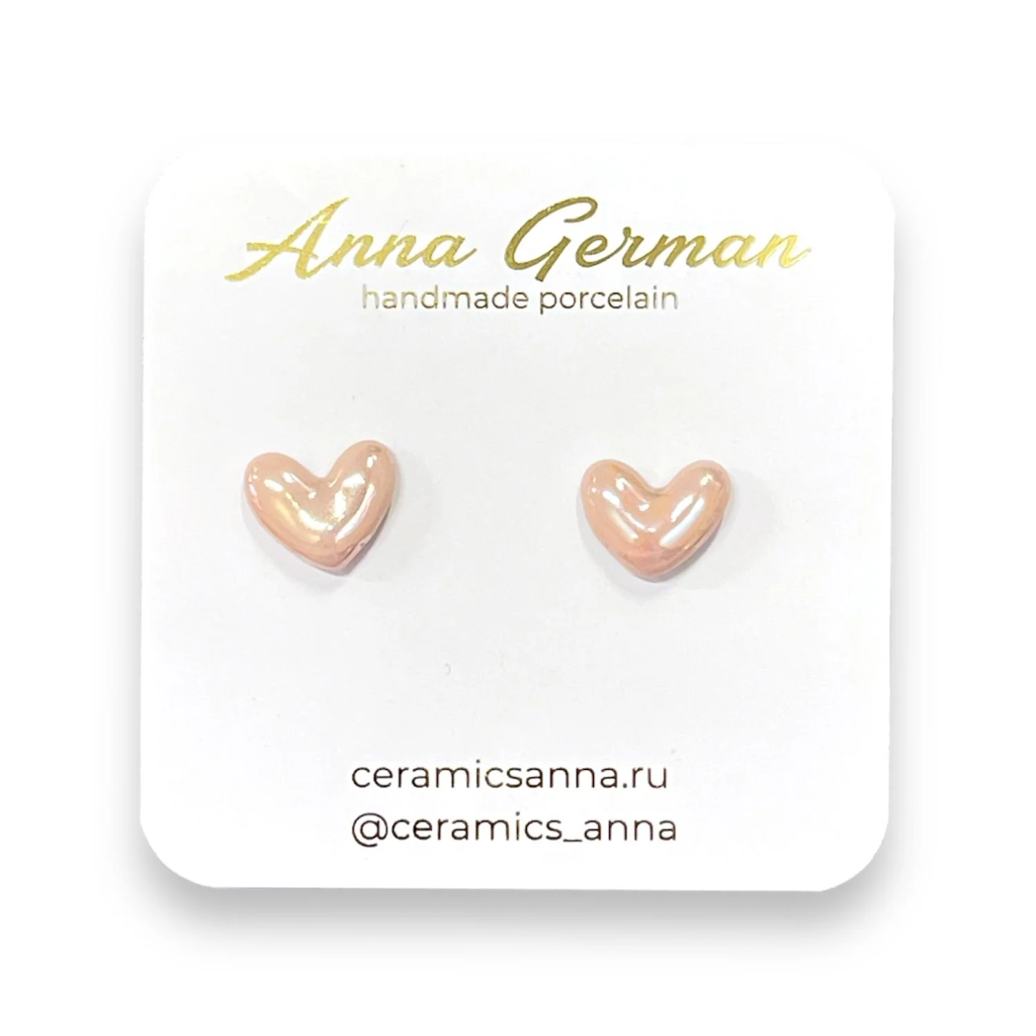 Серёжки-гвоздики Анна Герман Сердечки, фарфор, розовые перламутровые