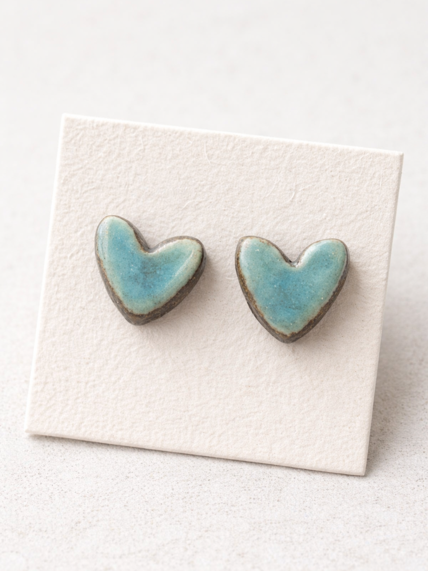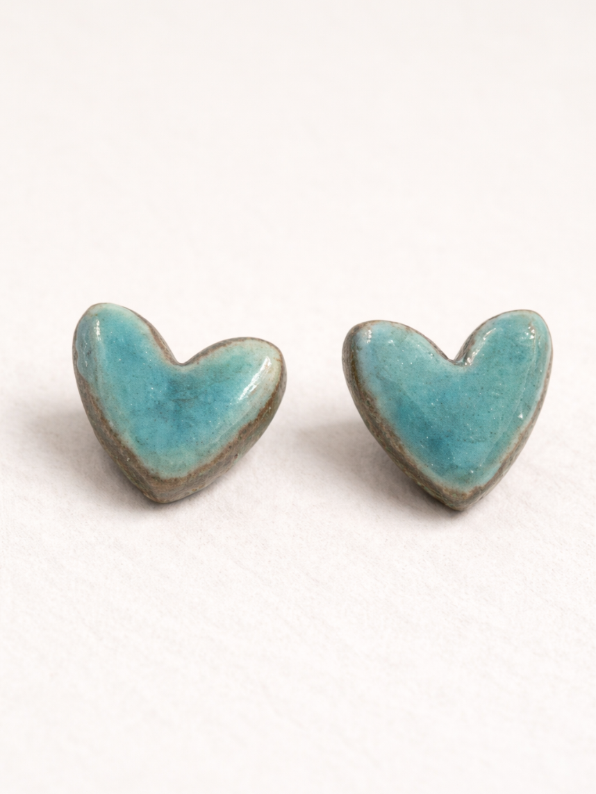 Серёжки-гвоздики Сердечки, керамика, бирюзовые