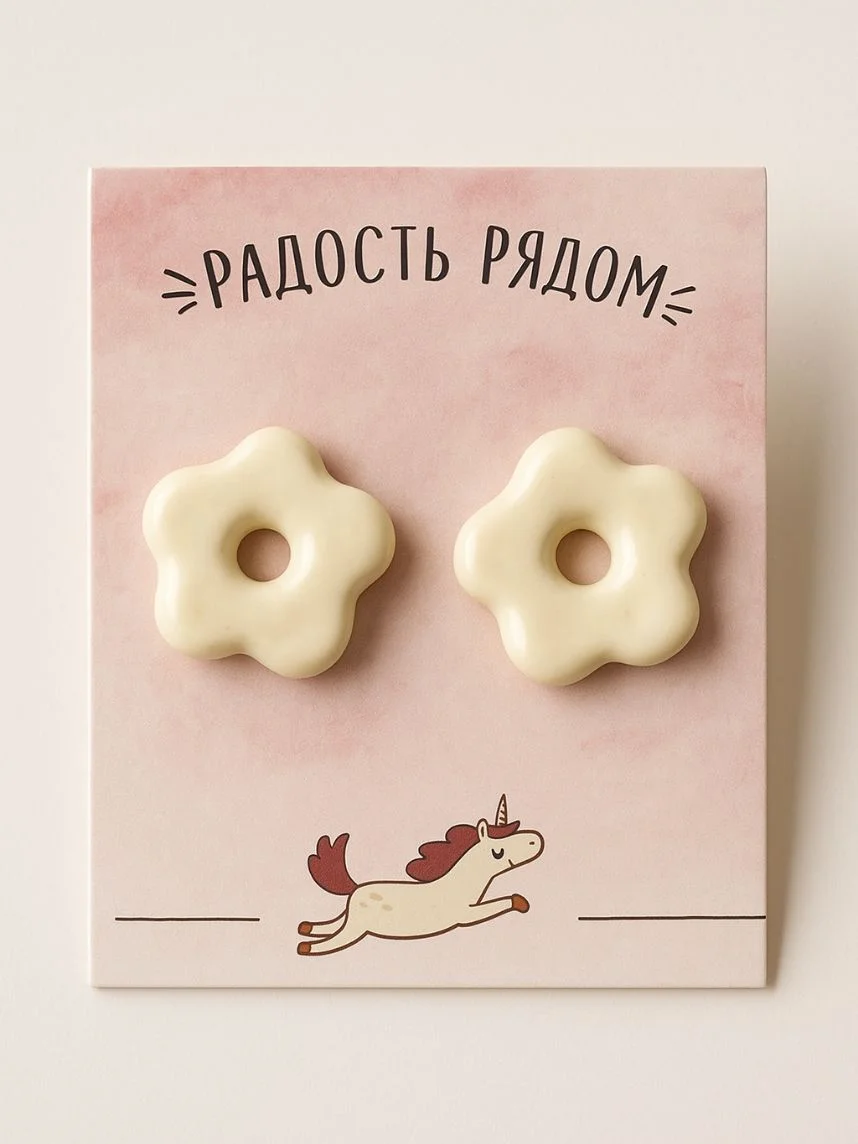 Серёжки-гвоздики Радость Рядом «Цветочки», полимерная глина, белые