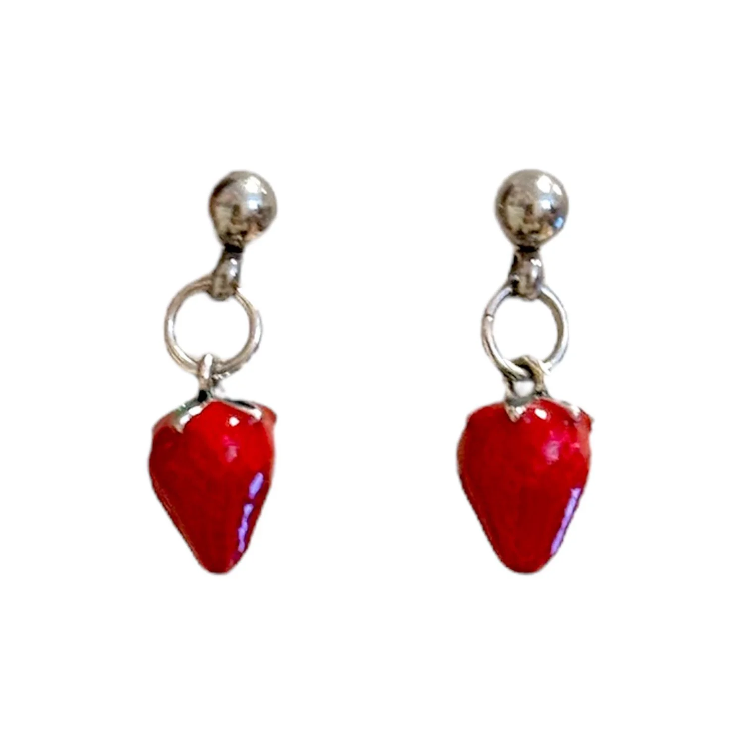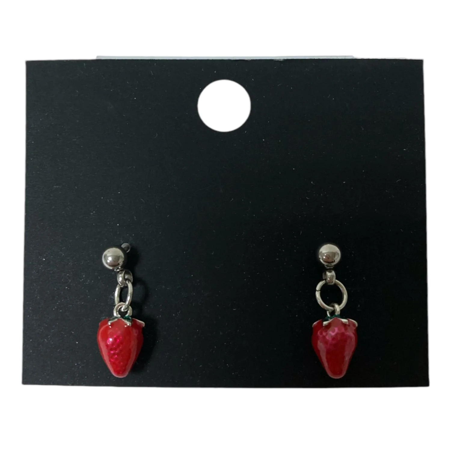 Серёжки-гвоздики с клубничками, нержавеющая сталь