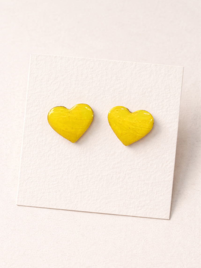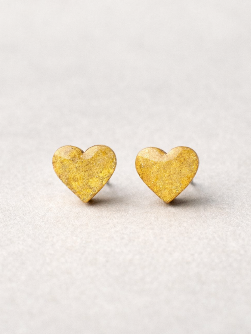 Серёжки-гвоздики Сердечки, дерево, жёлтые