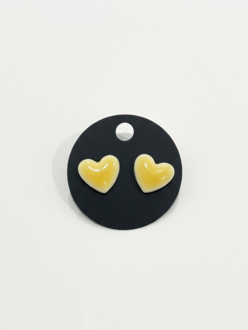 Серёжки-гвоздики КерамЕлКа «Сердечки», жёлтые, фарфор