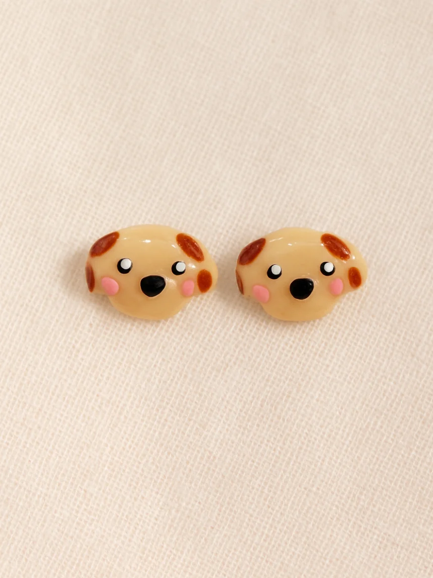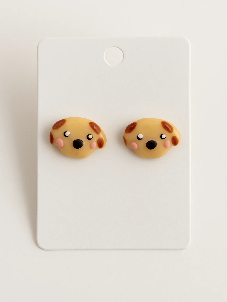 Серёжки-гвоздики Радость Рядом «Собачки», полимерная глина, коричневые