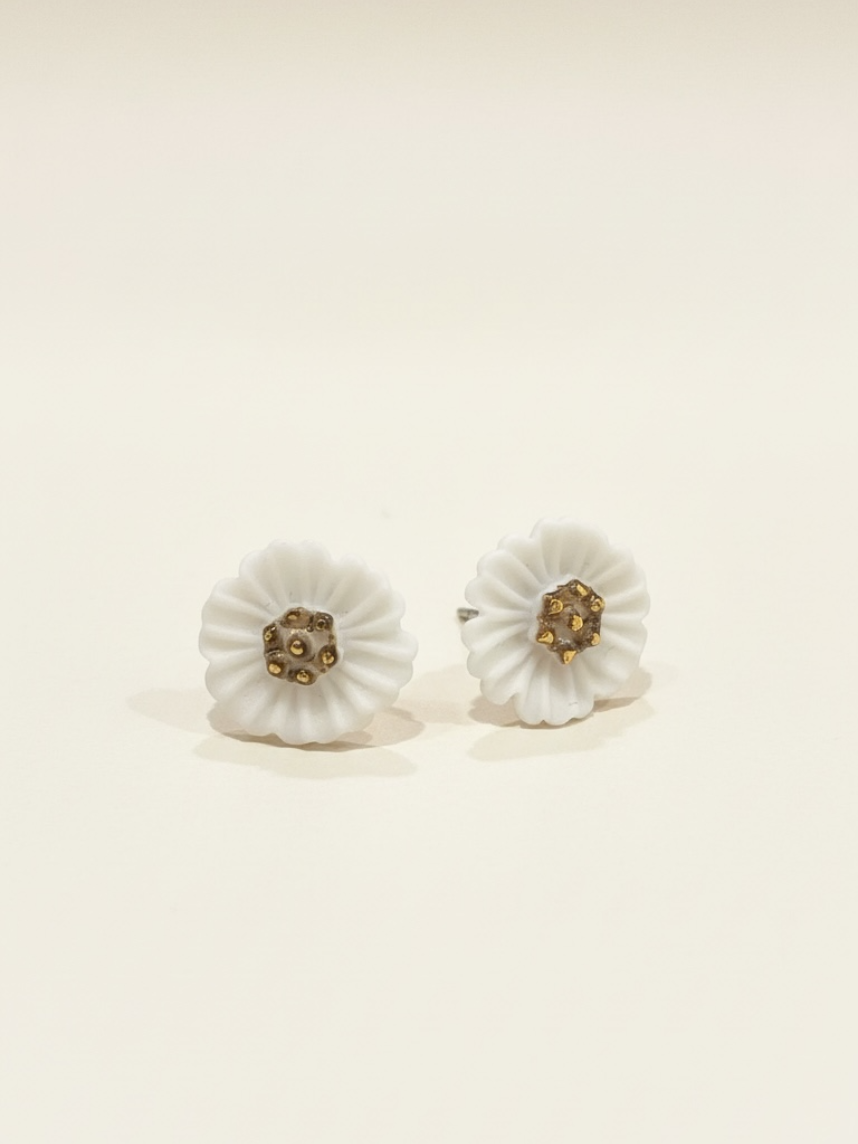Серёжки-гвоздики КерамЕлКа «Цветочки», белые, фарфор