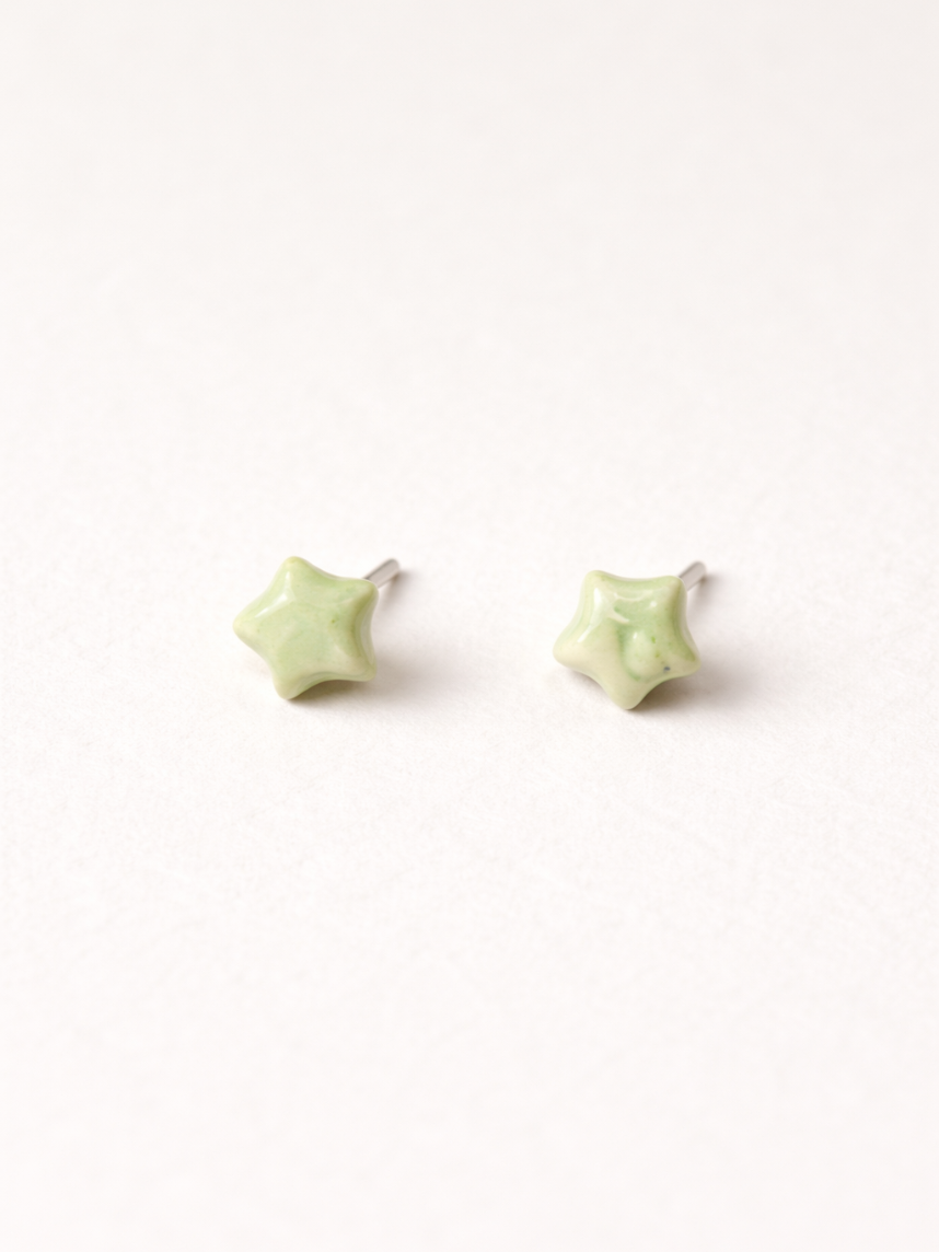 Серёжки-гвоздики «Звёздочки», фарфор, зеленые мраморные