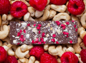 Шоколад Молочный с дробленным кешью и малиной 28 гр