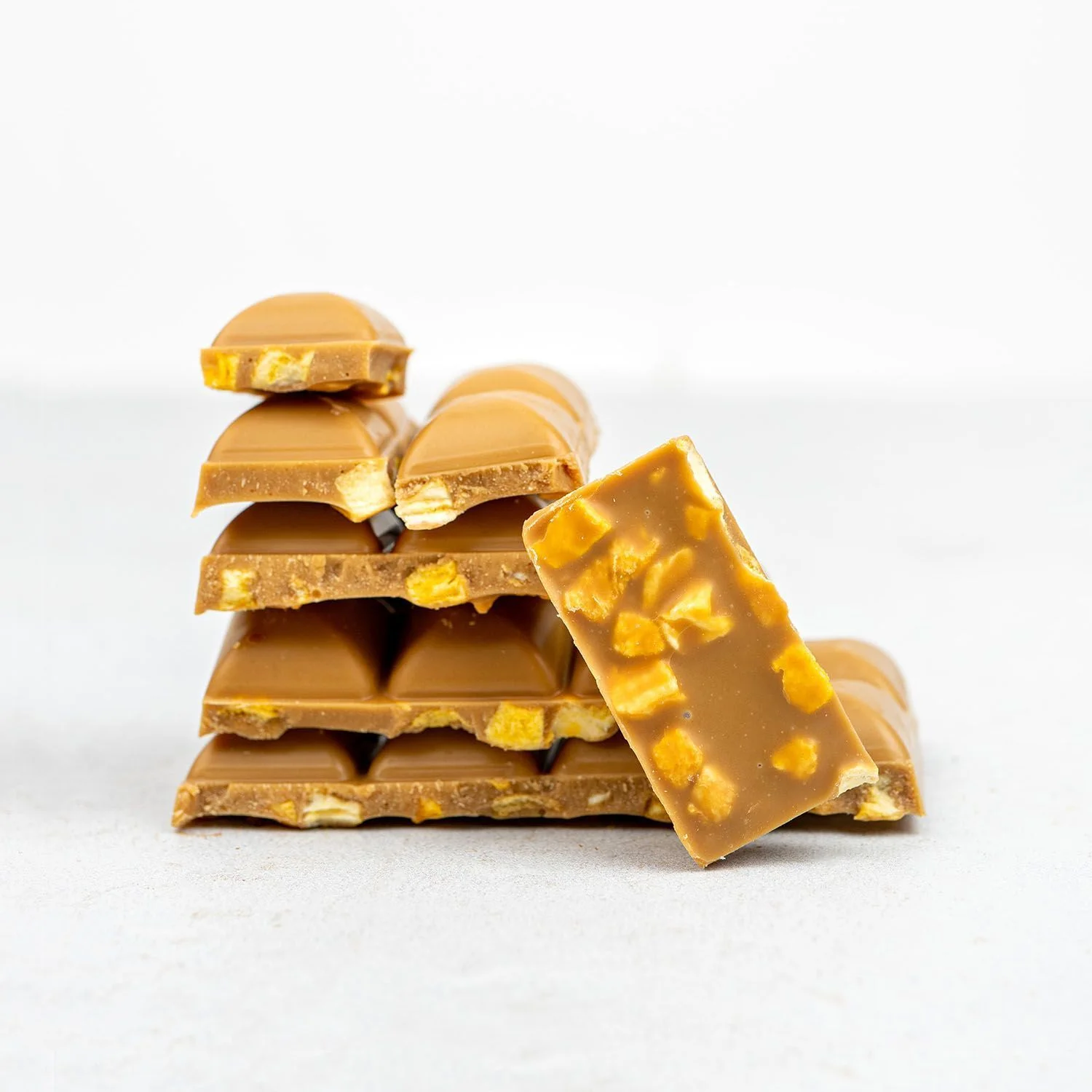 Белый шоколад на кешью не содержит какао тертого, потому безопасен даже для маленьких детей. Имеет нежную текстуру и кремовый цвет, дополнен хрустящим, погружающим в ароматы Азии, сублимированным манго. Не содержит глютена. Вес продукта: 65 г.