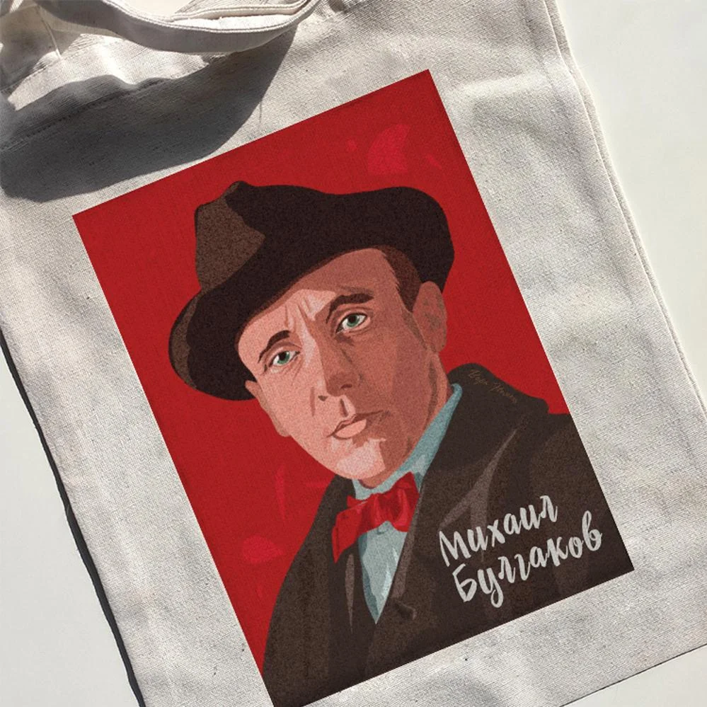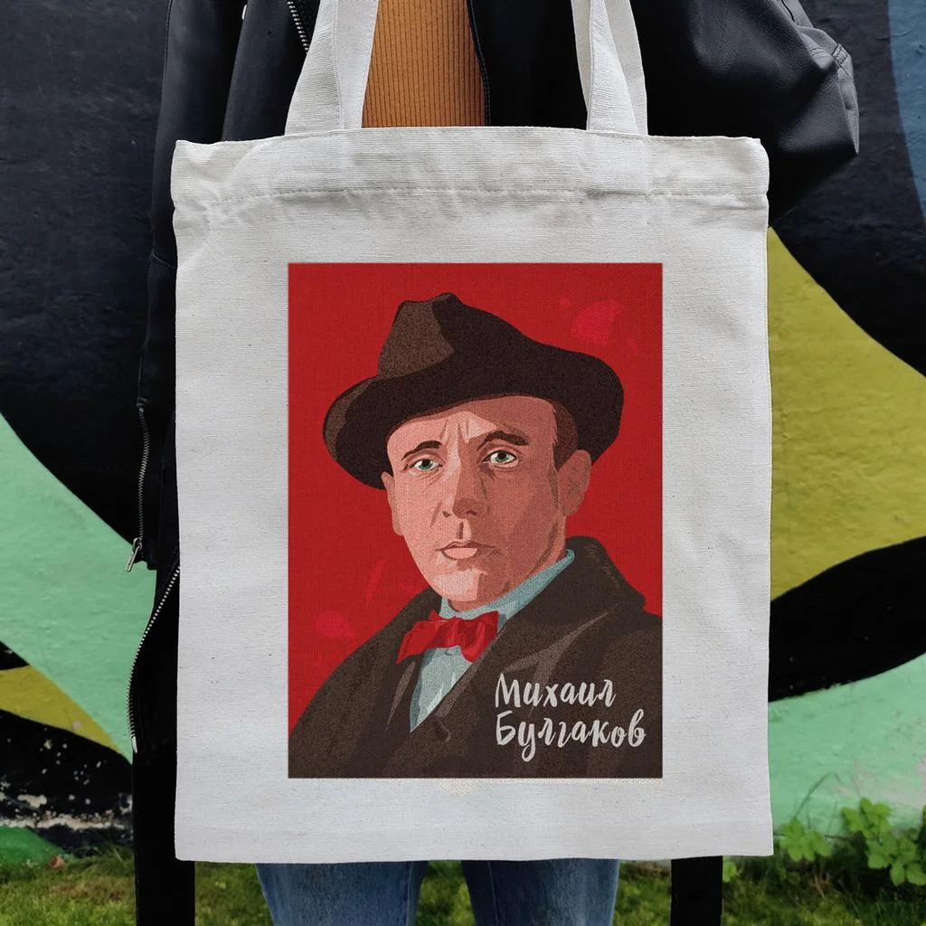 Сумка с портретом Михаила Булгакова — отличный выбор для походов по магазинам и прогулок в белые ночи. Она поможет вам отказаться от использования пластиковых пакетов.