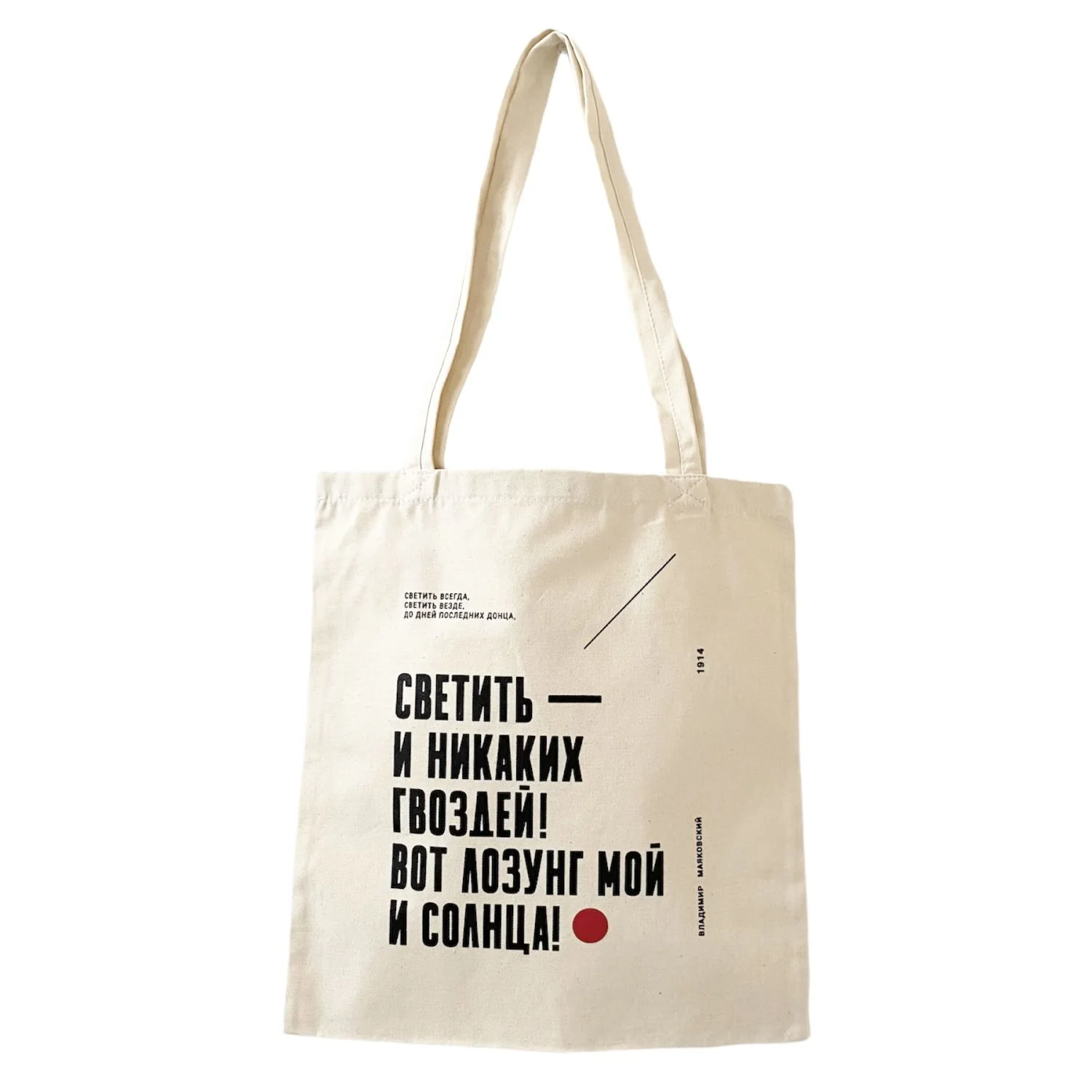 Шоппер «Маяковский. Светить» - это стильная и практичная сумка, созданная из плотного хлопка.