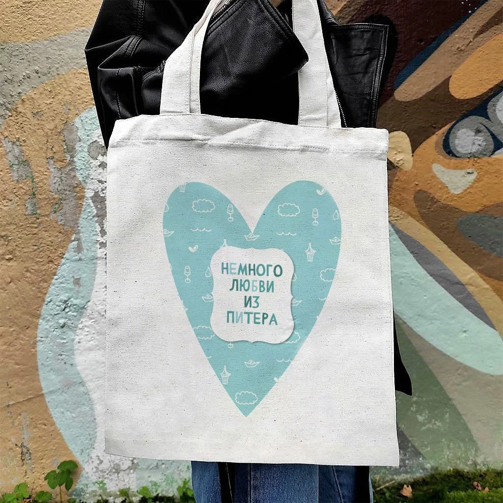 Шоппер «Немного любви из Питера» - это сумка, которая принесет вам немного любви из самого головокружительного города. Он изготовлен из 70% хлопка и 30% полиэфира. Размеры сумки составляют 34 × 41 × 6 см, а ручки имеют длину 30 × 2,5 см. Сумку можно стирать в машине на деликатном режиме или вручную при температуре 30 градусов.