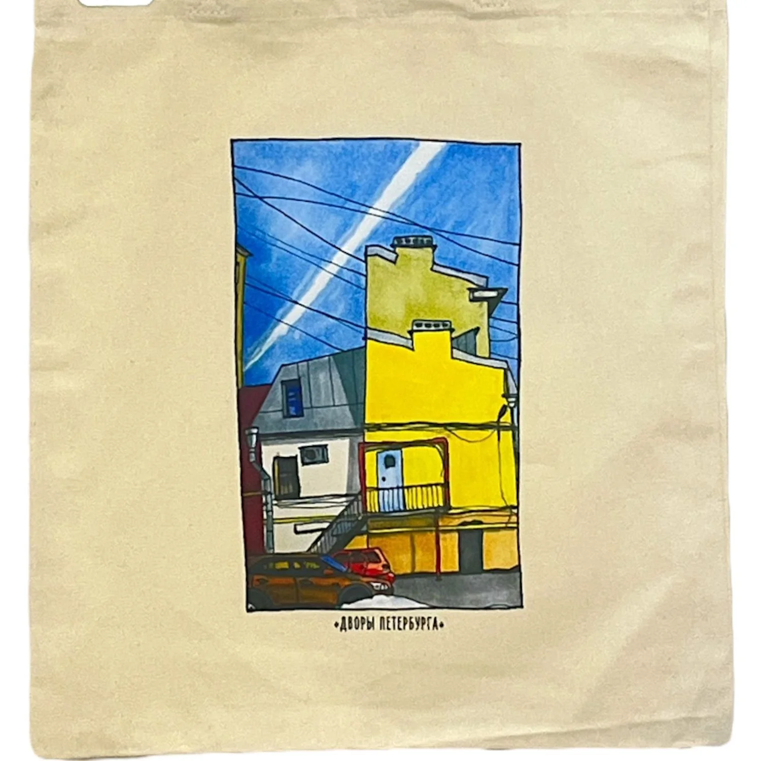 Сумка шоппер с дворами Петербурга «Дом на Транспортном переулке», бежевый