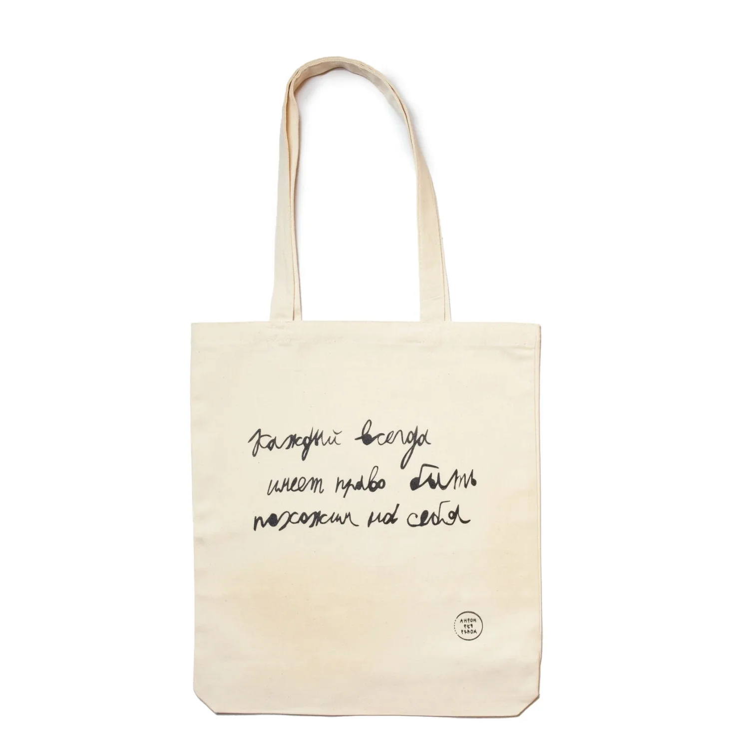 Сумка шоппер Антон тут рядом с надписью «Каждый всегда имеет право быть похожим на себя», хлопок, белый