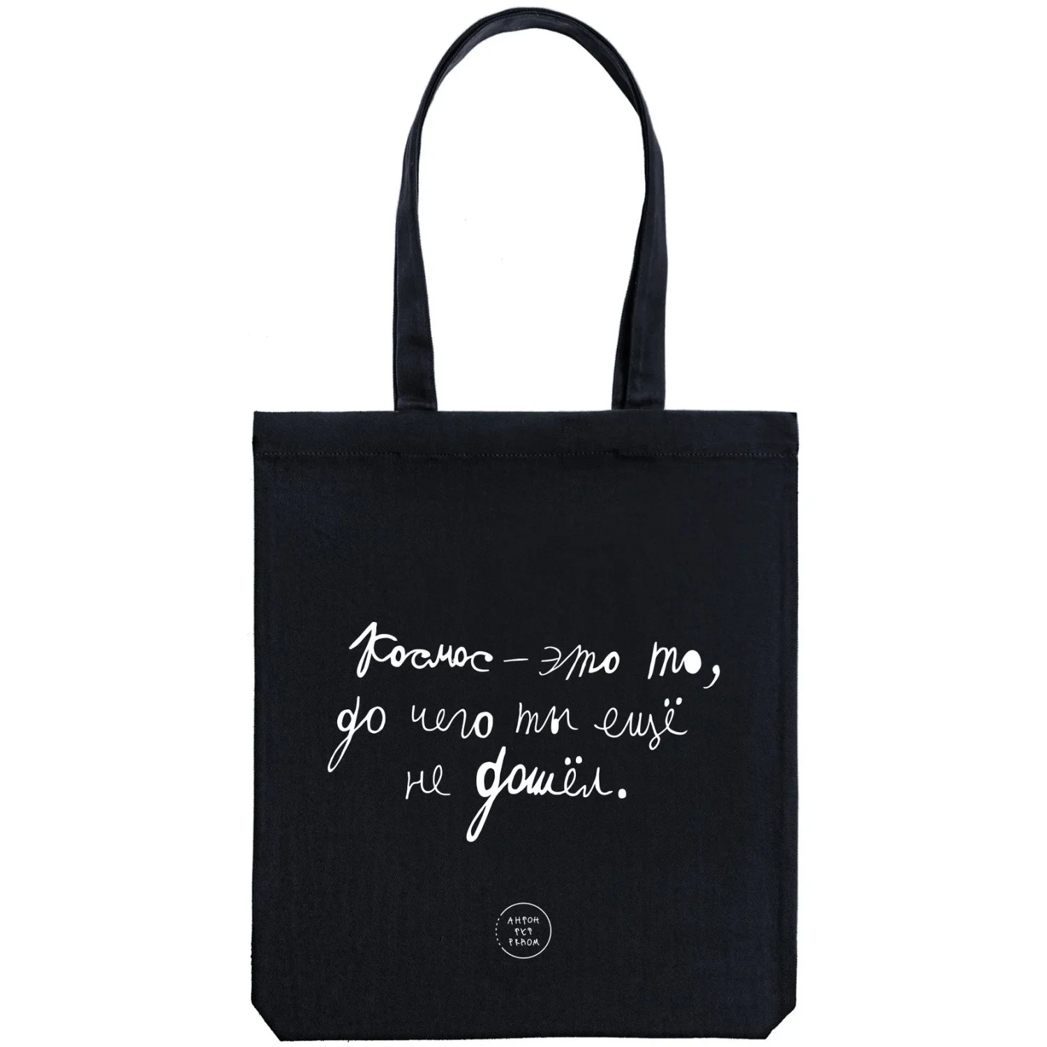 Сумка шоппер Антон тут рядом с надписью «Космос - это то, до чего ты еще не дошёл», хлопок, чёрный