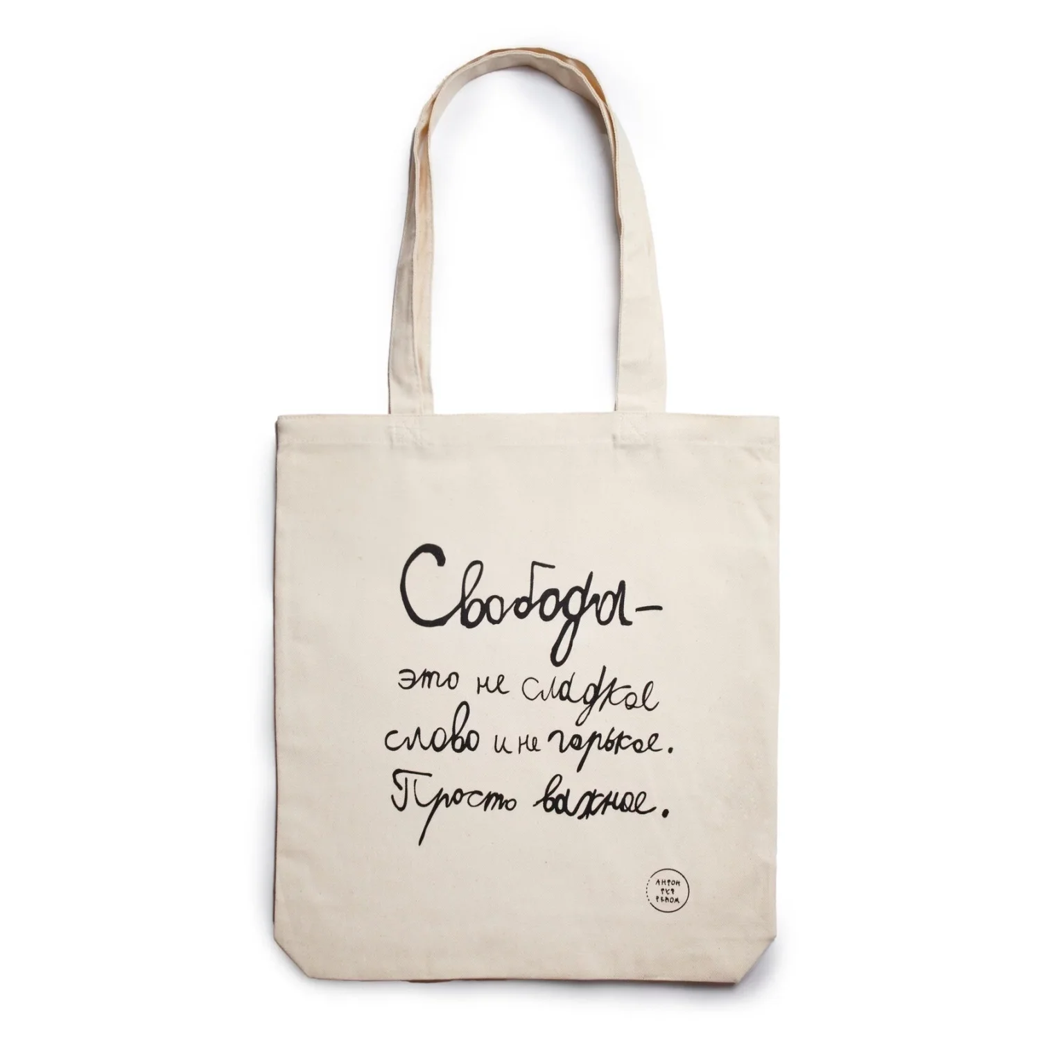 Сумка шоппер Антон тут рядом с надписью «Свобода - это не сладкое слово и не горькое», хлопок, белый