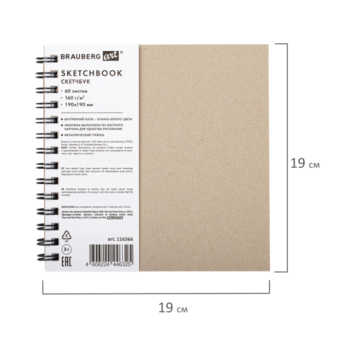 Скетчбук BRAUBERG «Крафт. Art Classic», 60 листов, 19 х 19 см