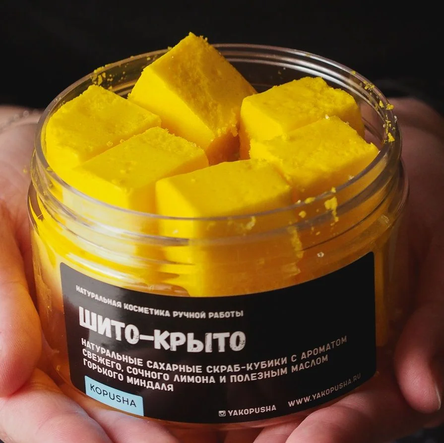 Скраб-кубики «Шито-крыто» от KOPUSHA - идеальное решение для освежающего летнего душа. Эти желтые кубики с ароматом свежего лимона и маслом миндаля обеспечивают мягкое и бережное очищение кожи.