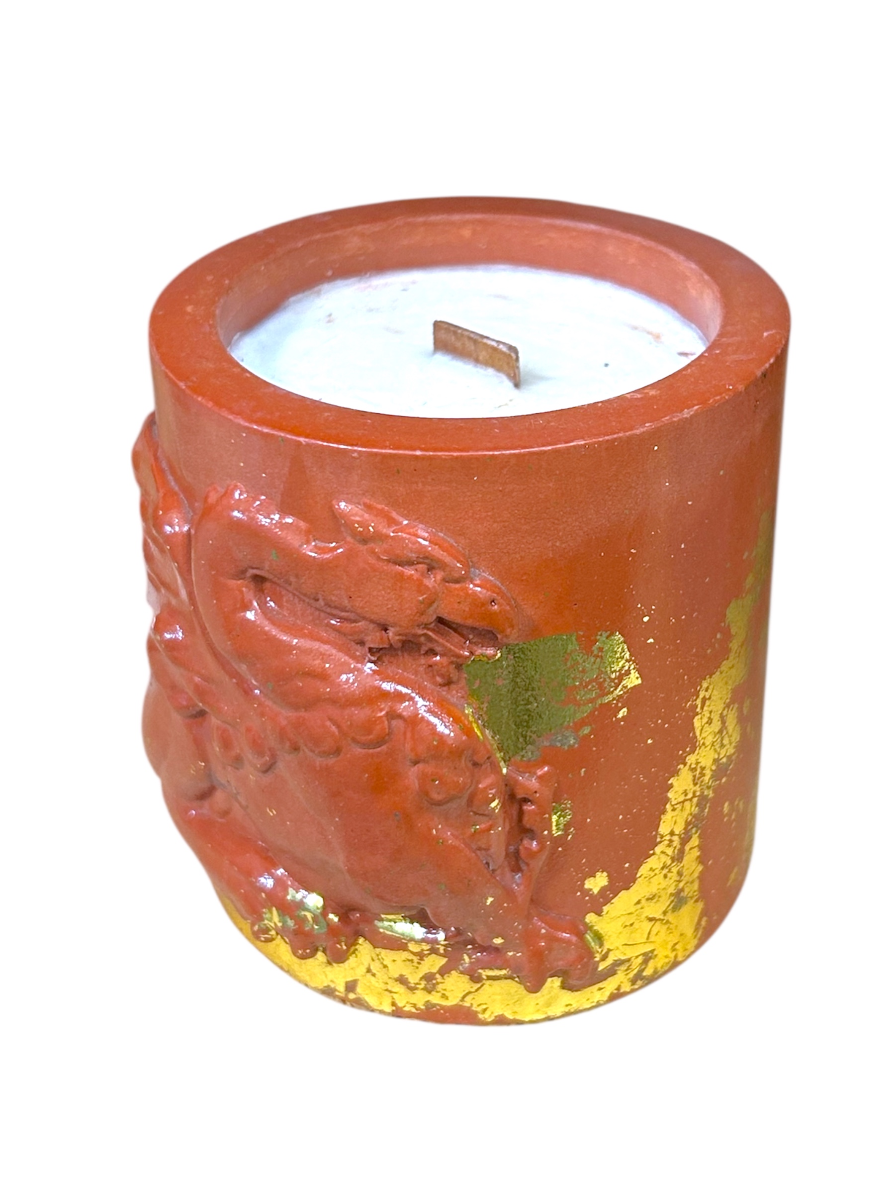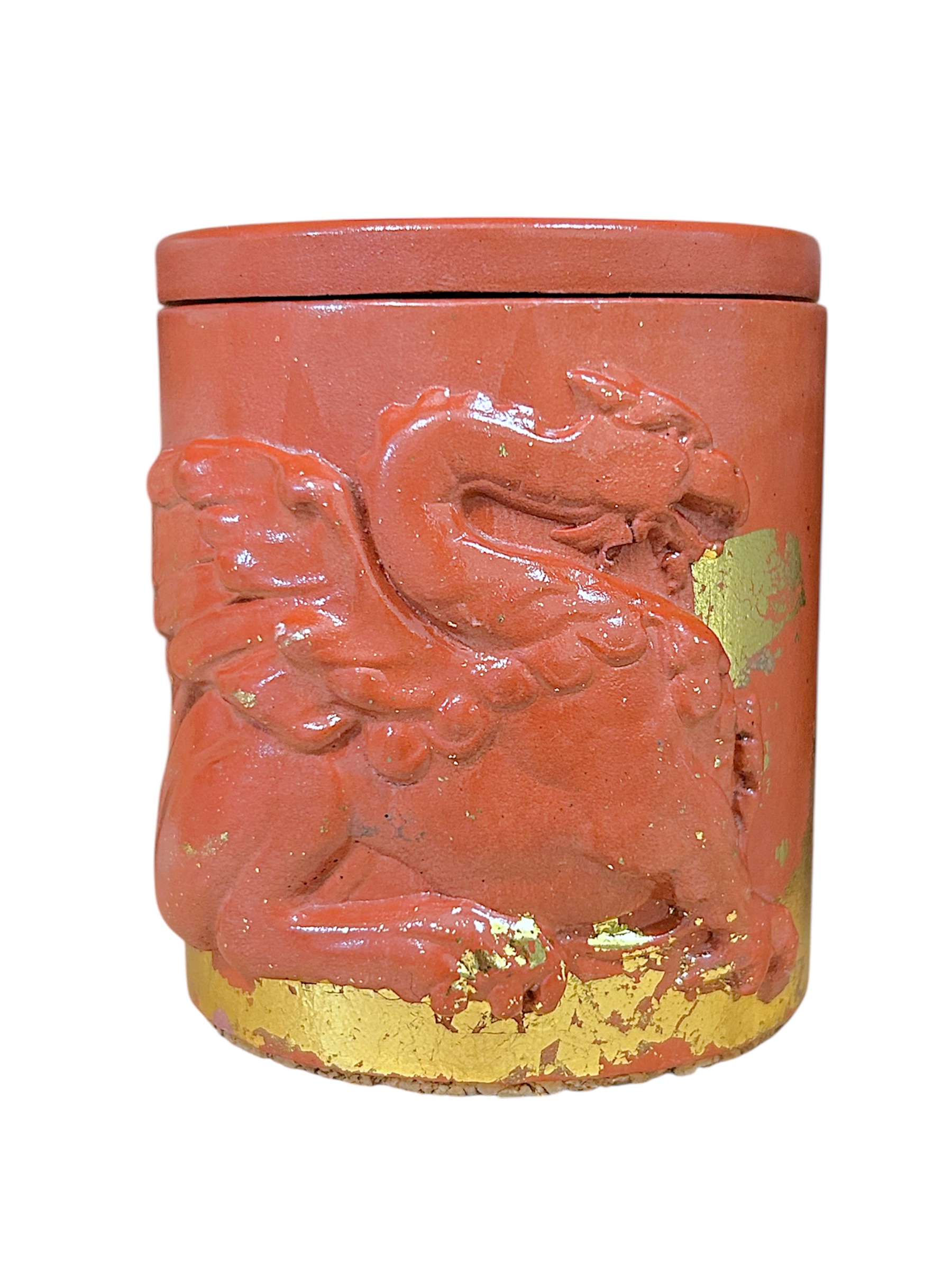 Соевая свеча «Грифон» с ароматом чайного дерева в гипсовом стакане, кирпичная с поталью, 130 мл