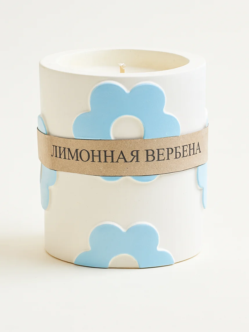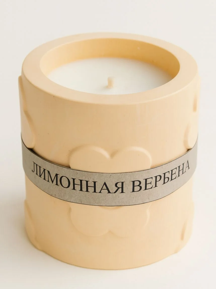 Соевая свеча ручной работы в гипсовом стакане ручной работы с ароматом лимонной вербены от бренда SOFI candles с хлопковым фитилём.