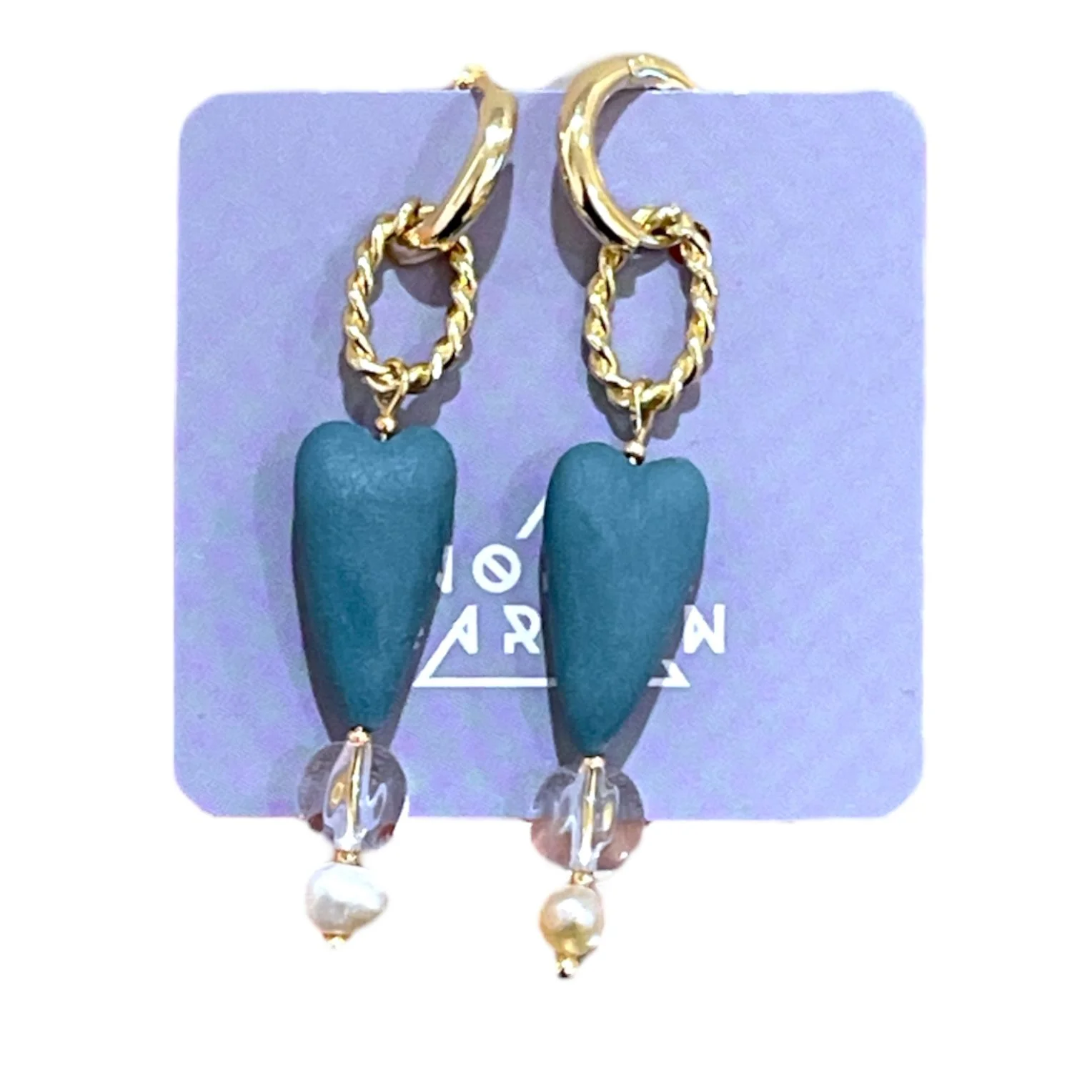 Составные серьги-конго ручной работы Сердечки и прозрачные бусины, фарфор