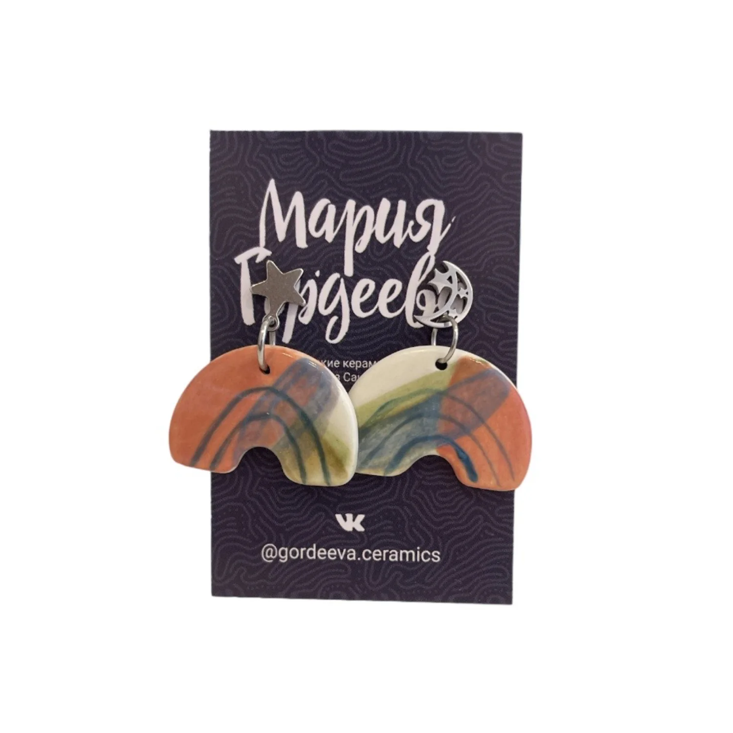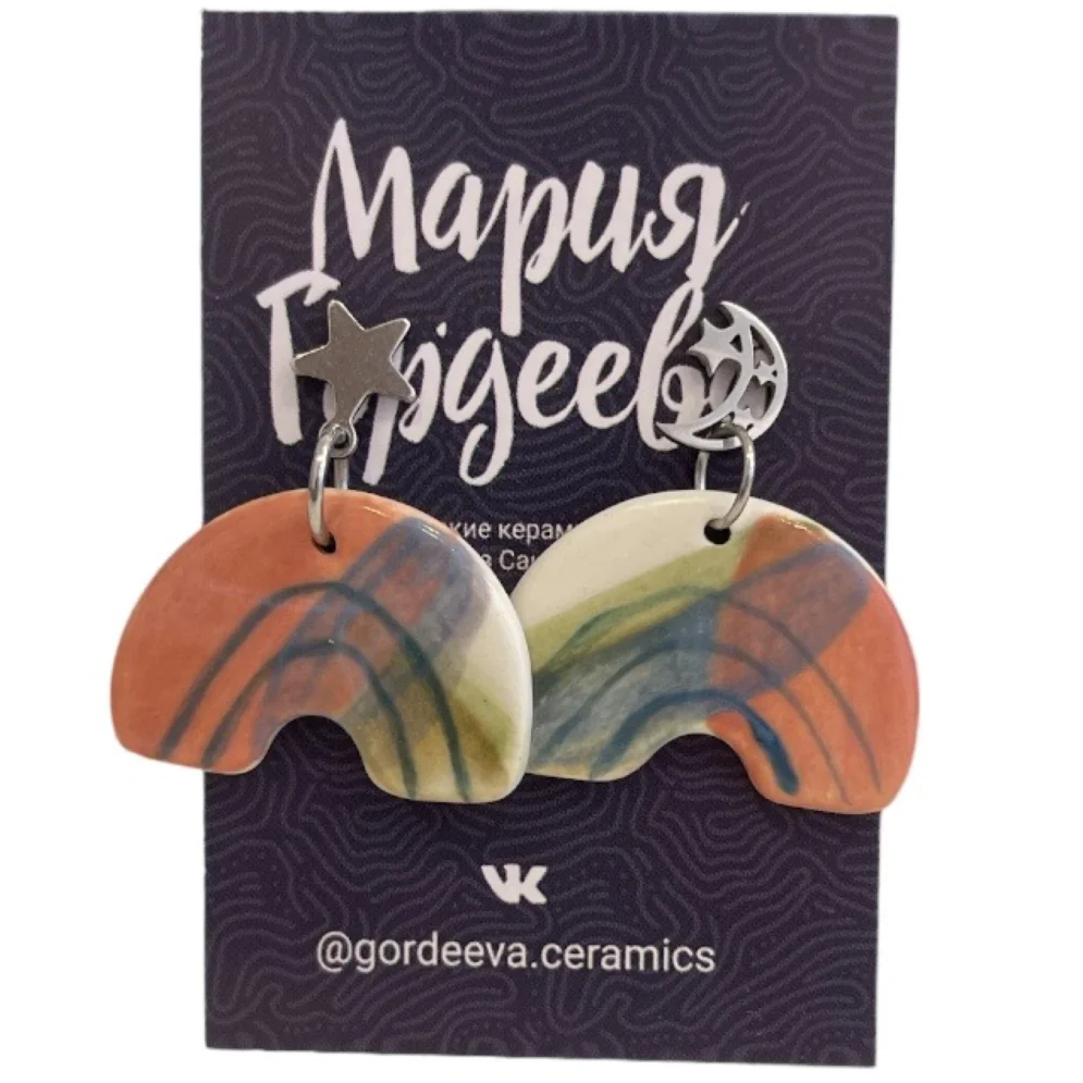 Керамические составные серьги от петербургского бренда Gordeeva ceramics. Ручная работа. Эти серьги - настоящее произведение искусства, созданное Марией Гордеевой. Они отличаются своей уникальностью и оригинальностью дизайна. Каждая серьга выполнена вручную с использованием высококачественной керамики. Благодаря своей форме, декоративным элементам и яркому цвету, эти серьги привлекают внимание и добавляют индивидуальности любому образу. Они идеально подходят для молодых и стильных девушек, которые хотят выглядеть ярко и необычно. Сочетайте их с различными нарядами и аксессуарами, чтобы создать уникальный и запоминающийся образ. Размер - 25 мм. Замок - гвоздик.