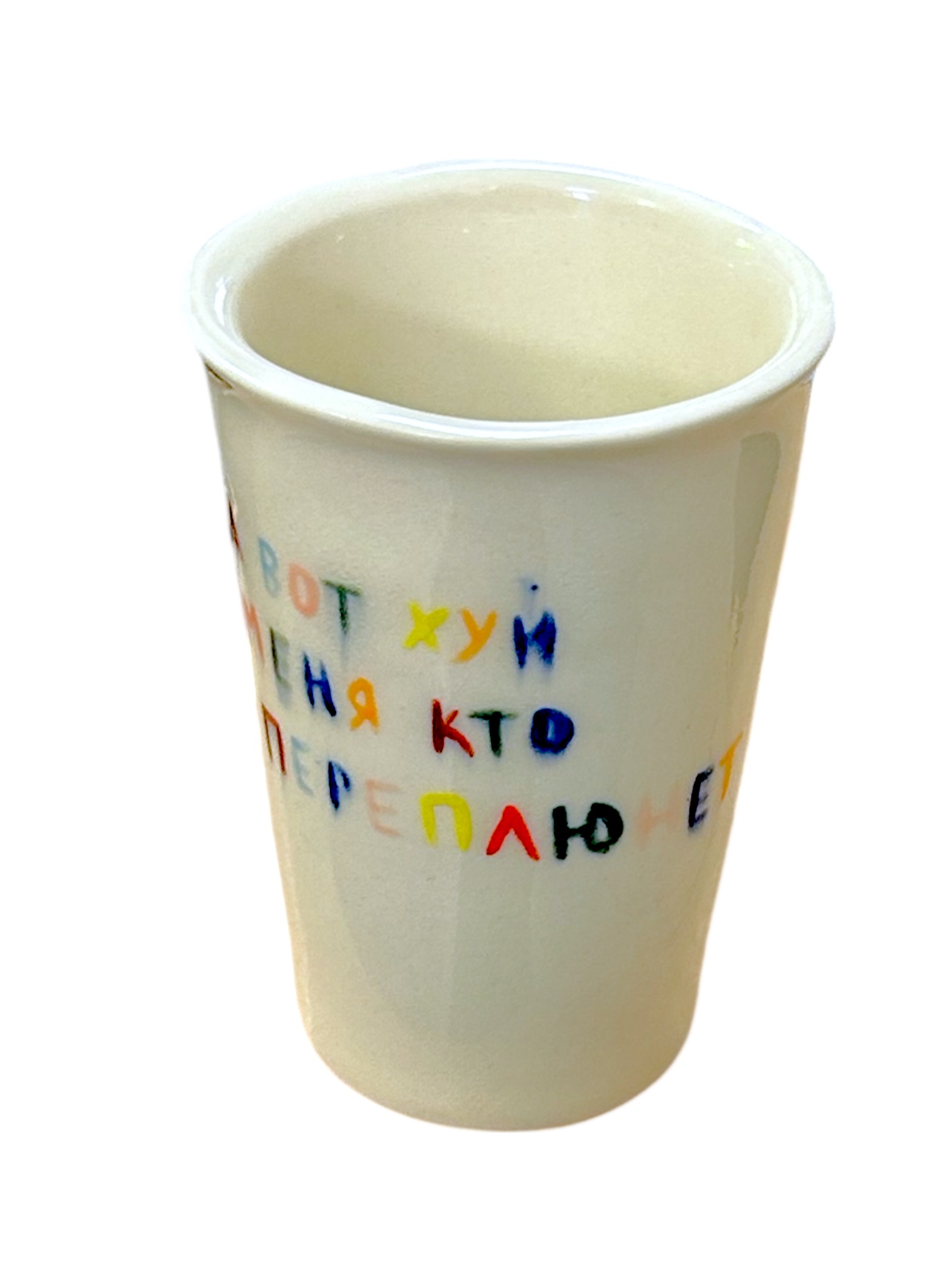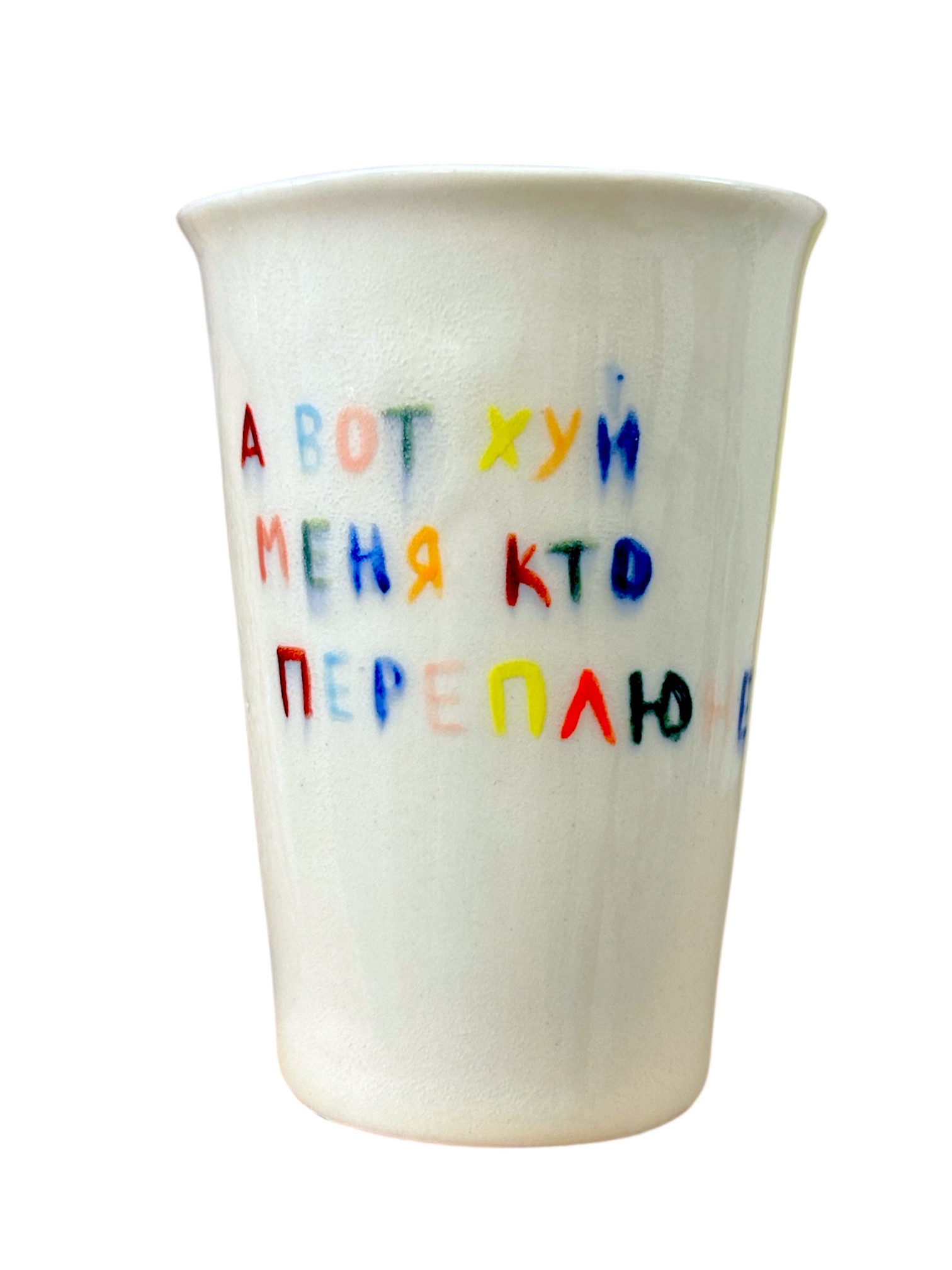 Стакан ручной работы «А вот х*й меня кто переплюнет», полуфарфор, 200 мл