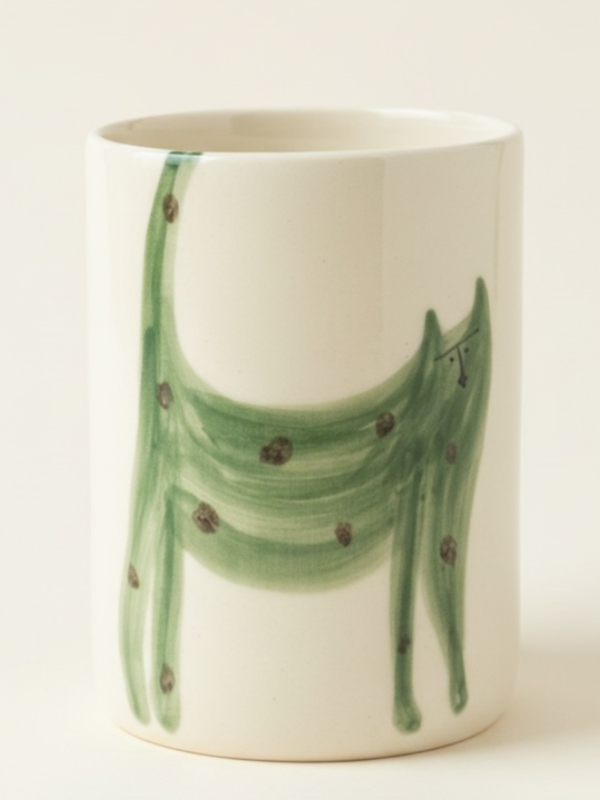 Стакан ручной работы Донышко-горлышко «Кот Краш Зеленый», белый, керамика, 300 мл