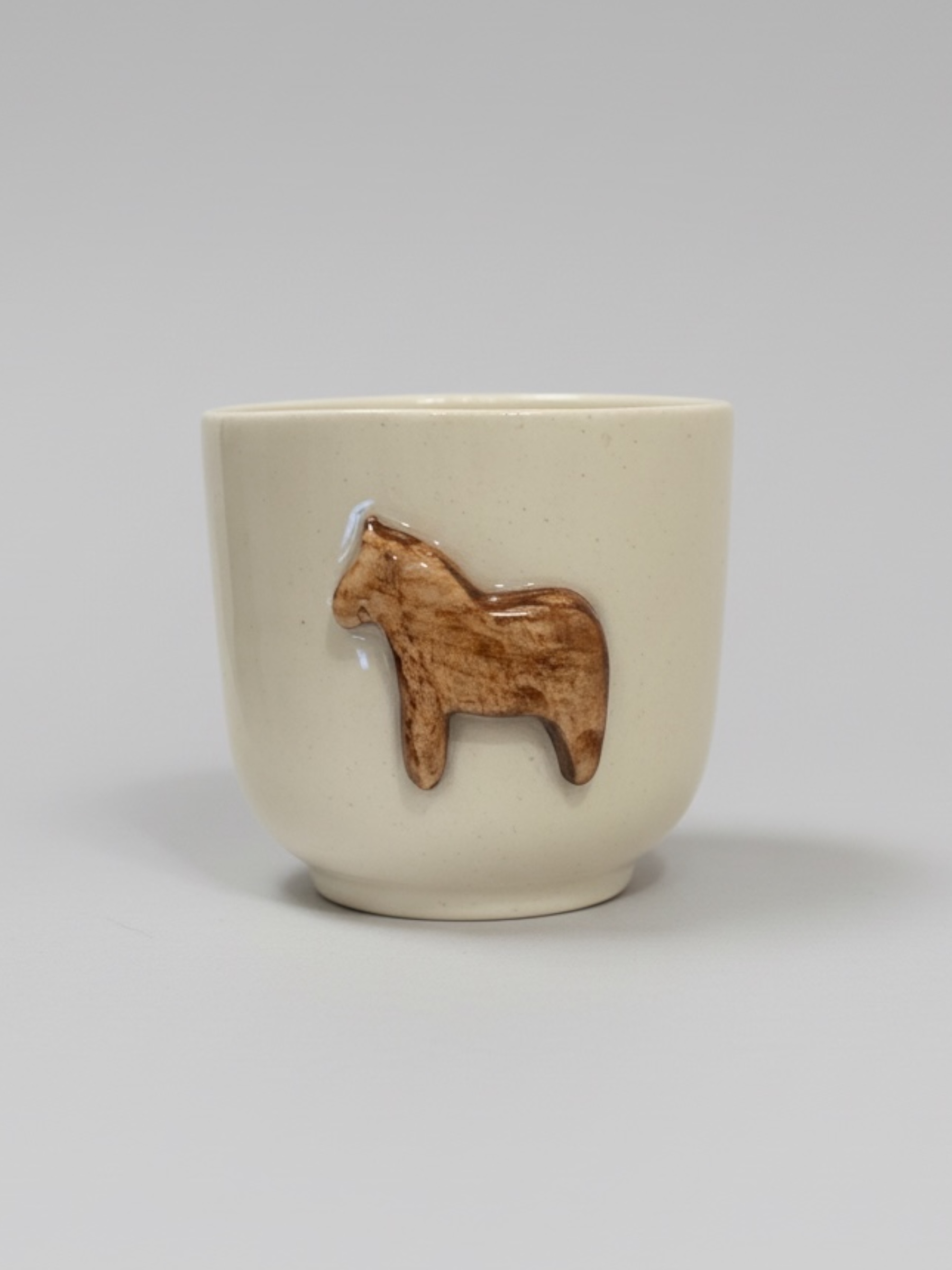 Стакан ручной работы «Лошадка», белый, полуфарфор, 100 мл
