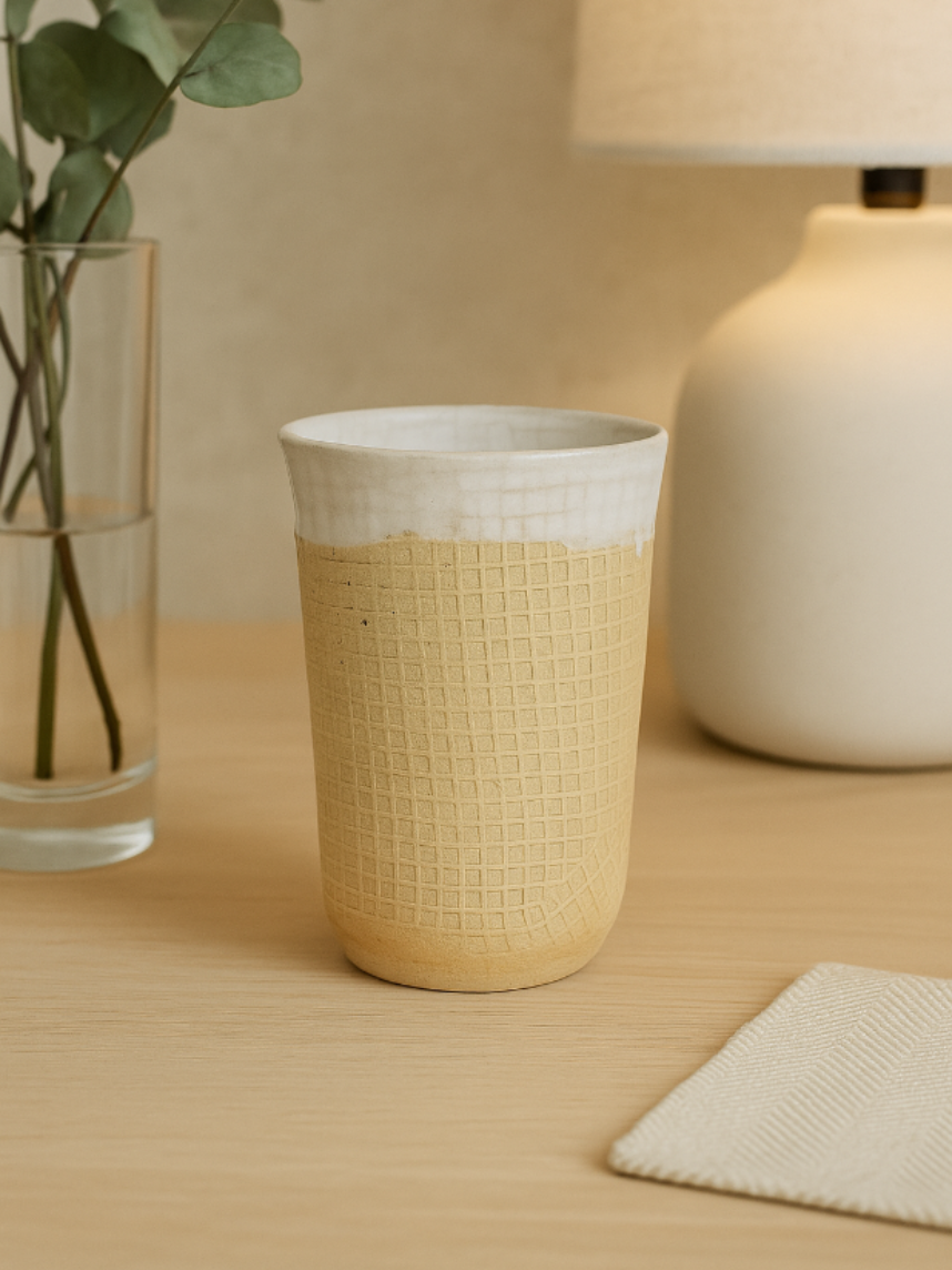 Стакан ручной работы «Вафельный», бежевый, керамика, 300 мл