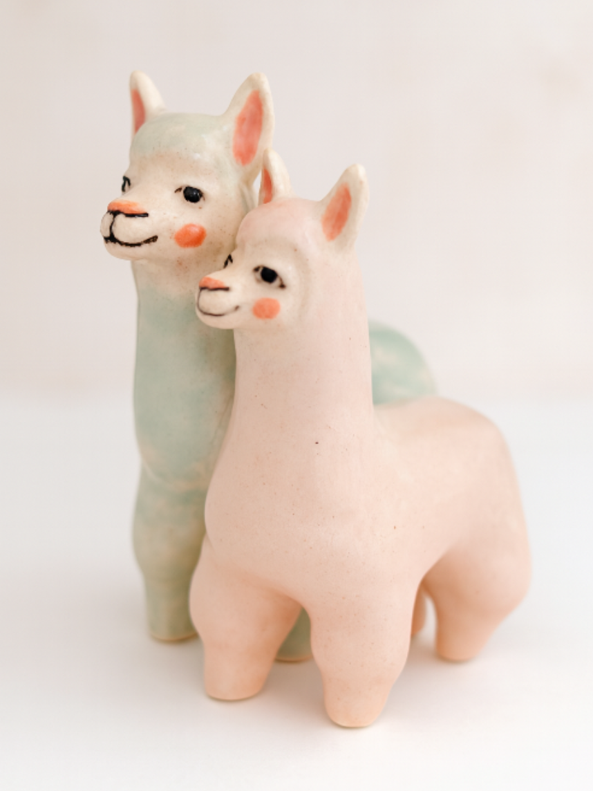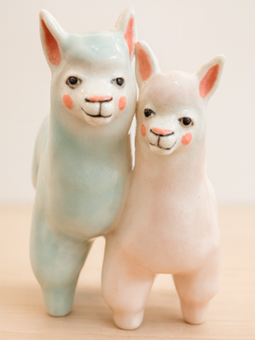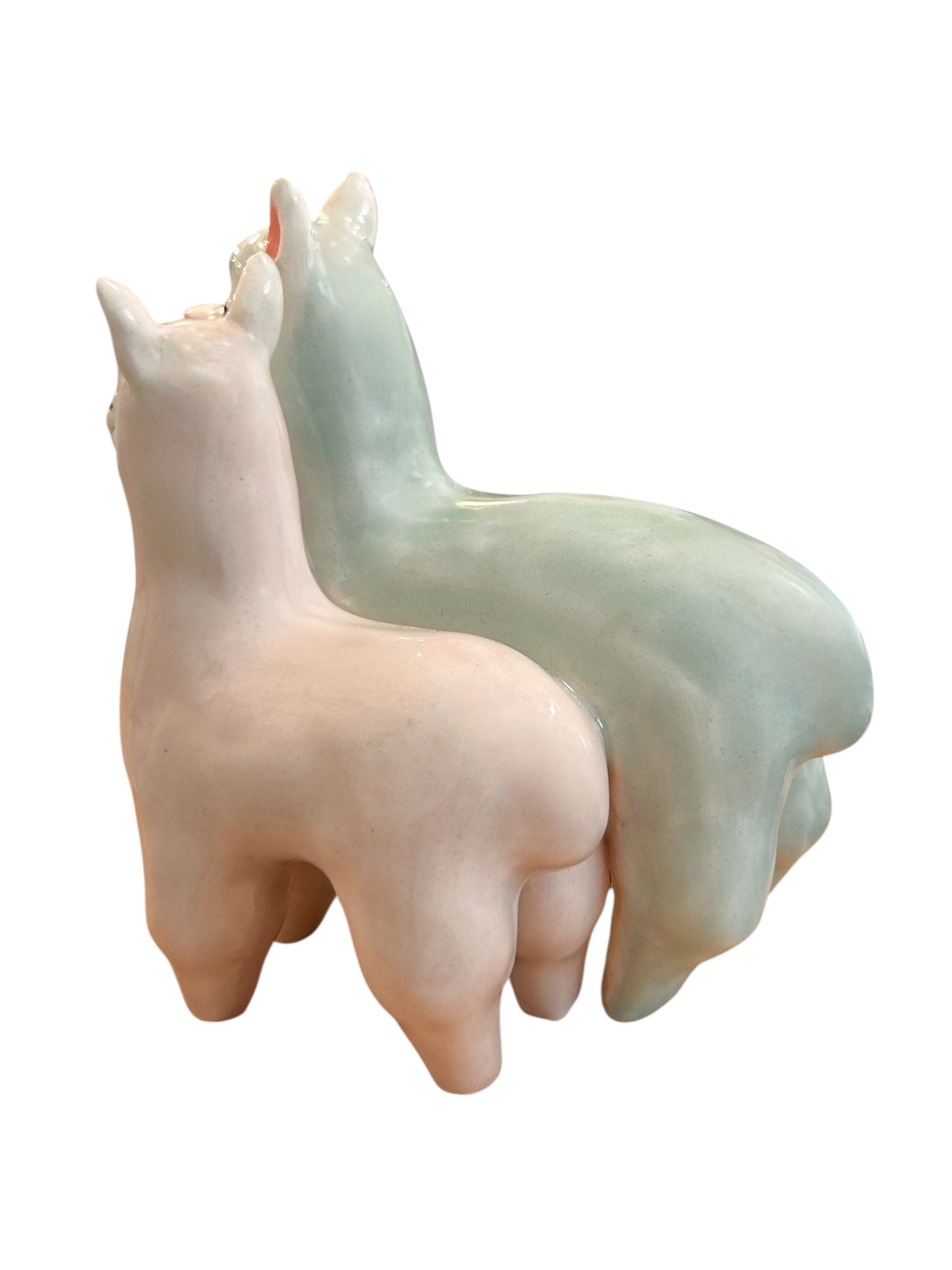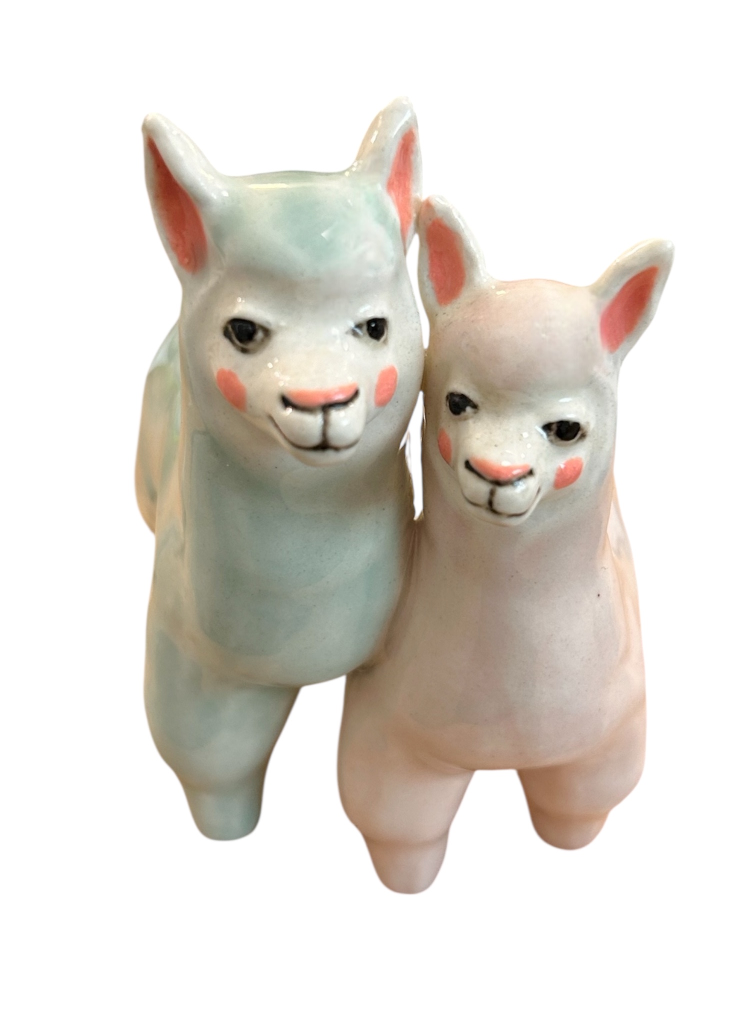 Статуэтка керамическая ручной работы «Ламы», розово-голубая