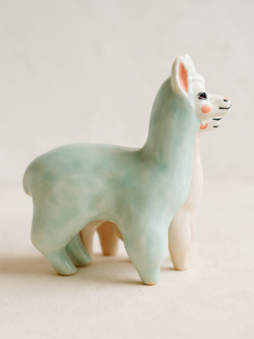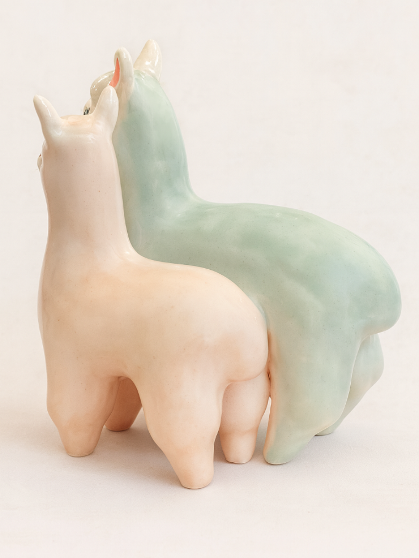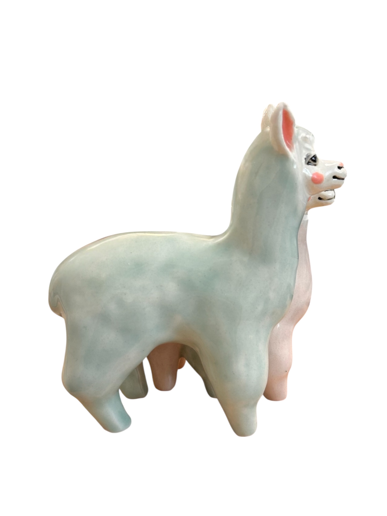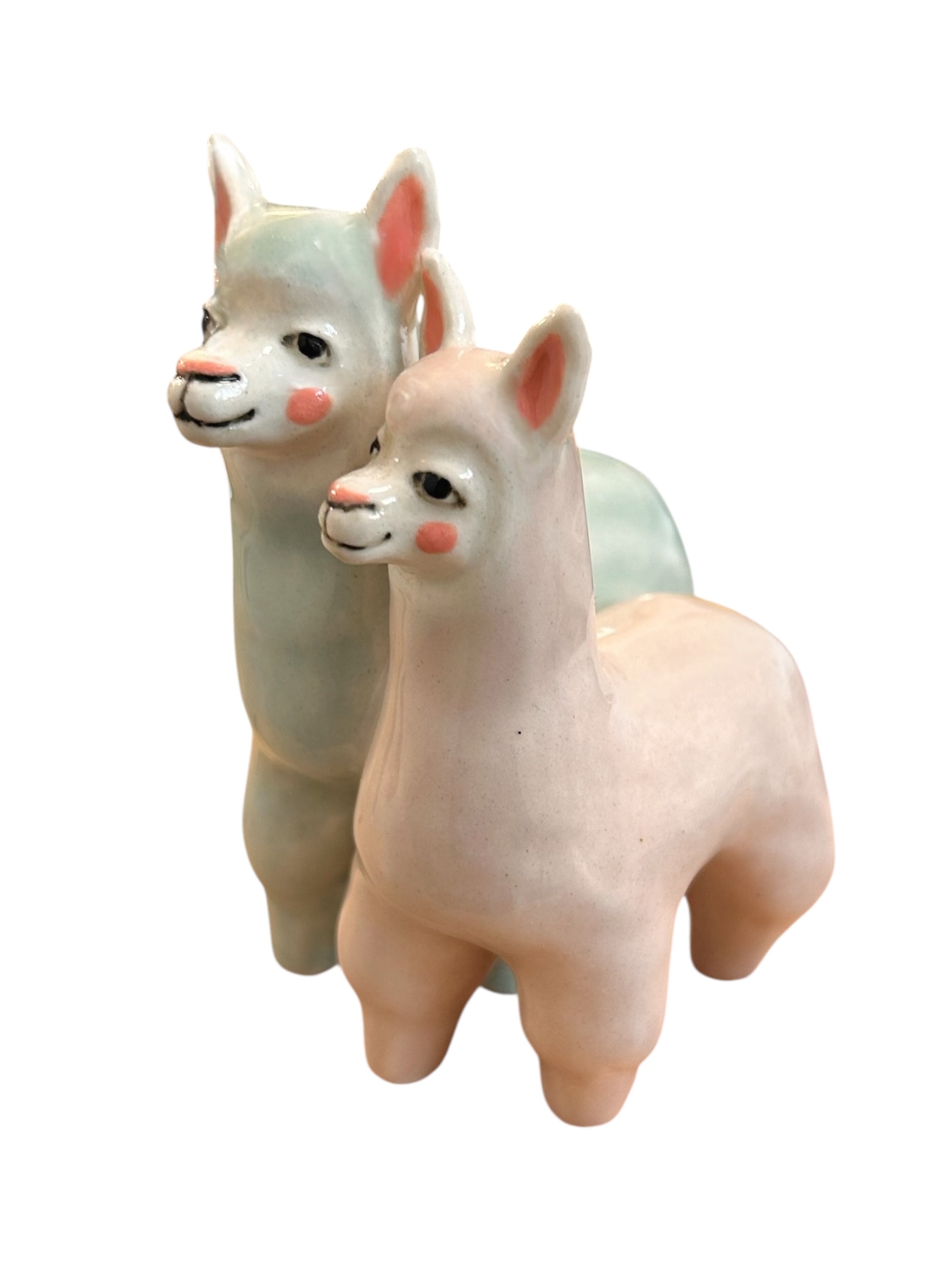 Статуэтка керамическая ручной работы «Ламы», розово-голубая