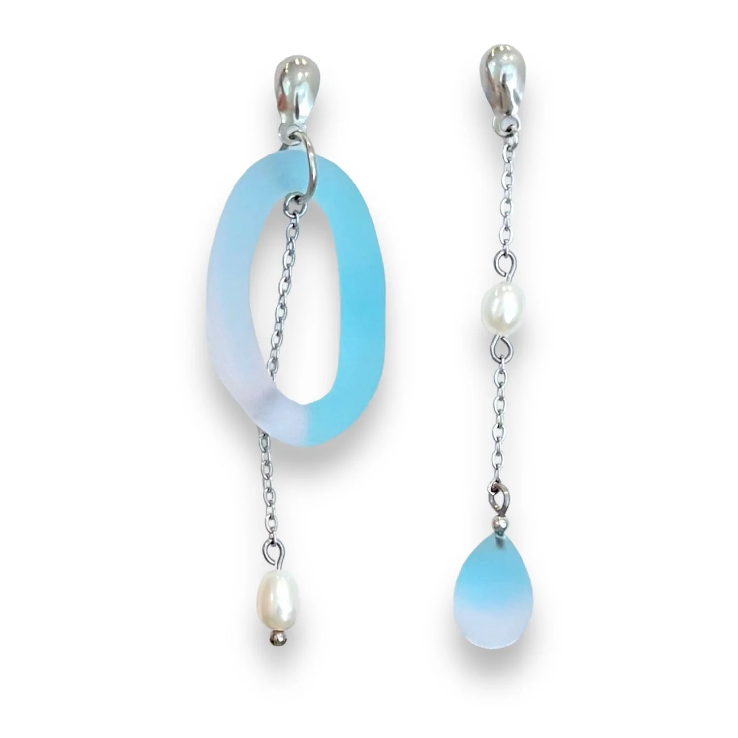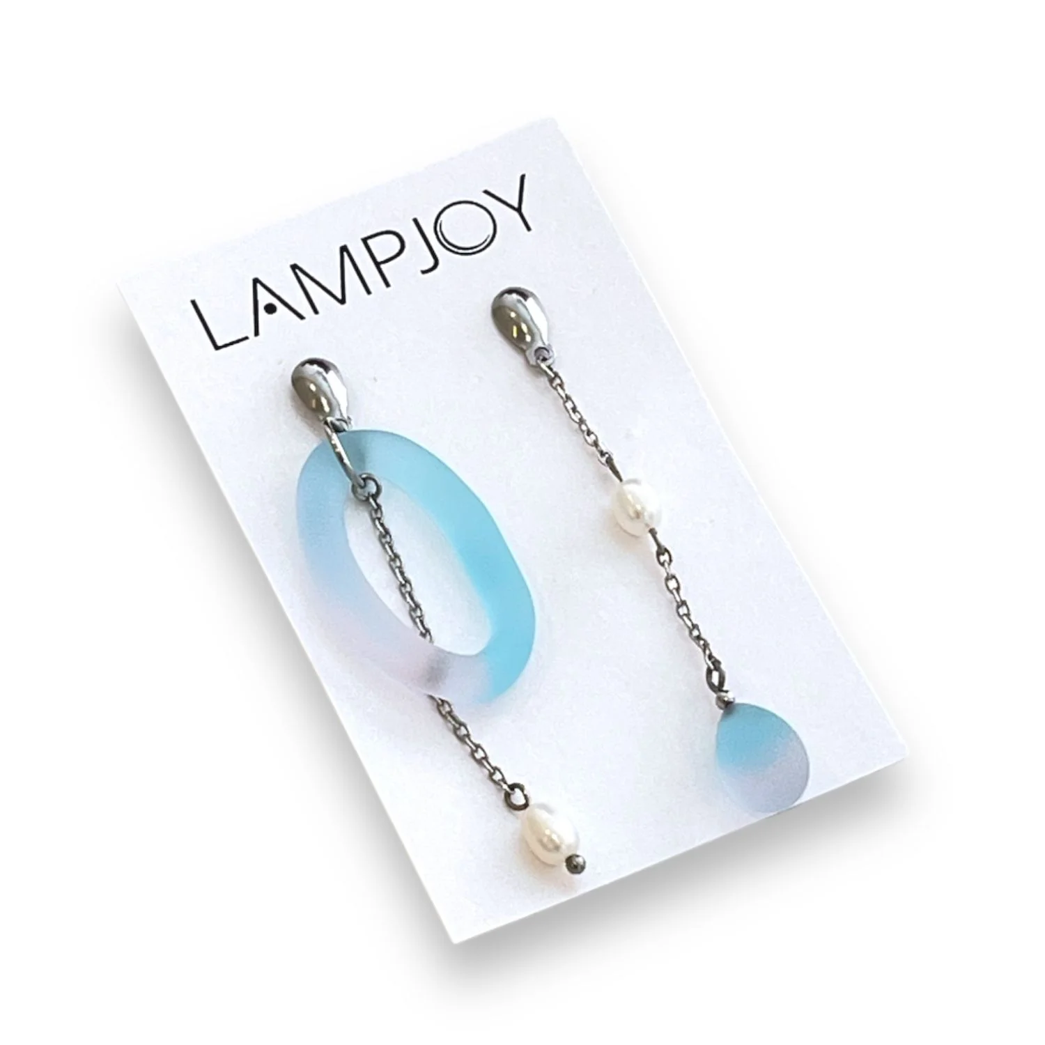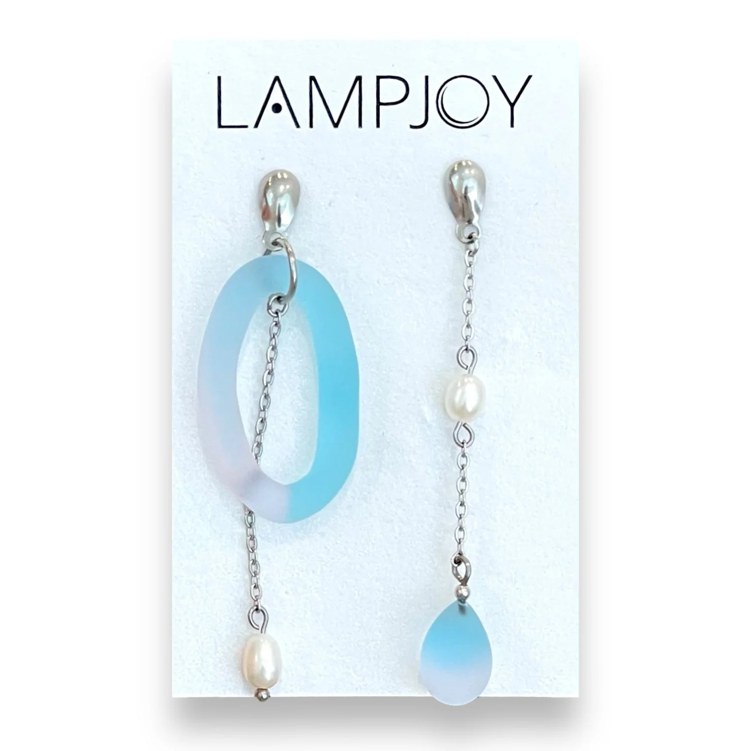 Асимметричные серьги Лампджой, матовое стекло, голубо-розовые