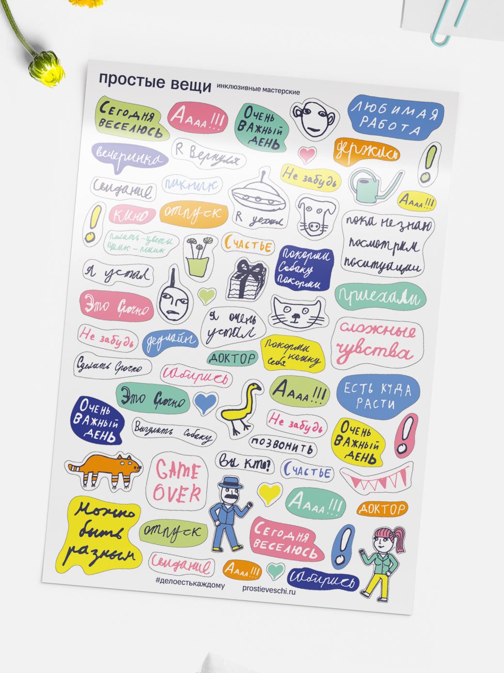 Стикеры на виниле с матовой ламинацией от инклюзивной мастерской «Простые вещи».