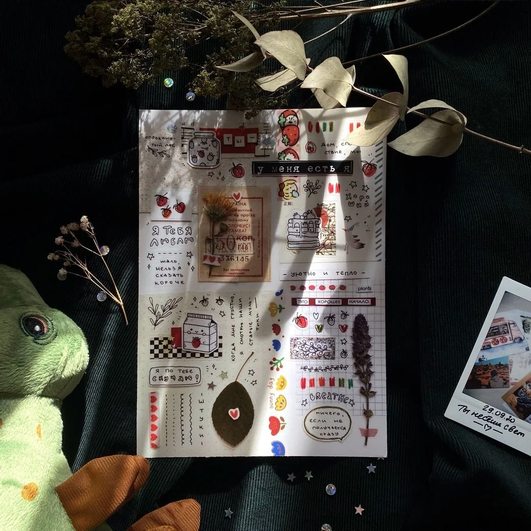 В стикерпаке использованы строчки из песен «сбпч - жаль нельзя сказать короче» и «просто лера - лютики».