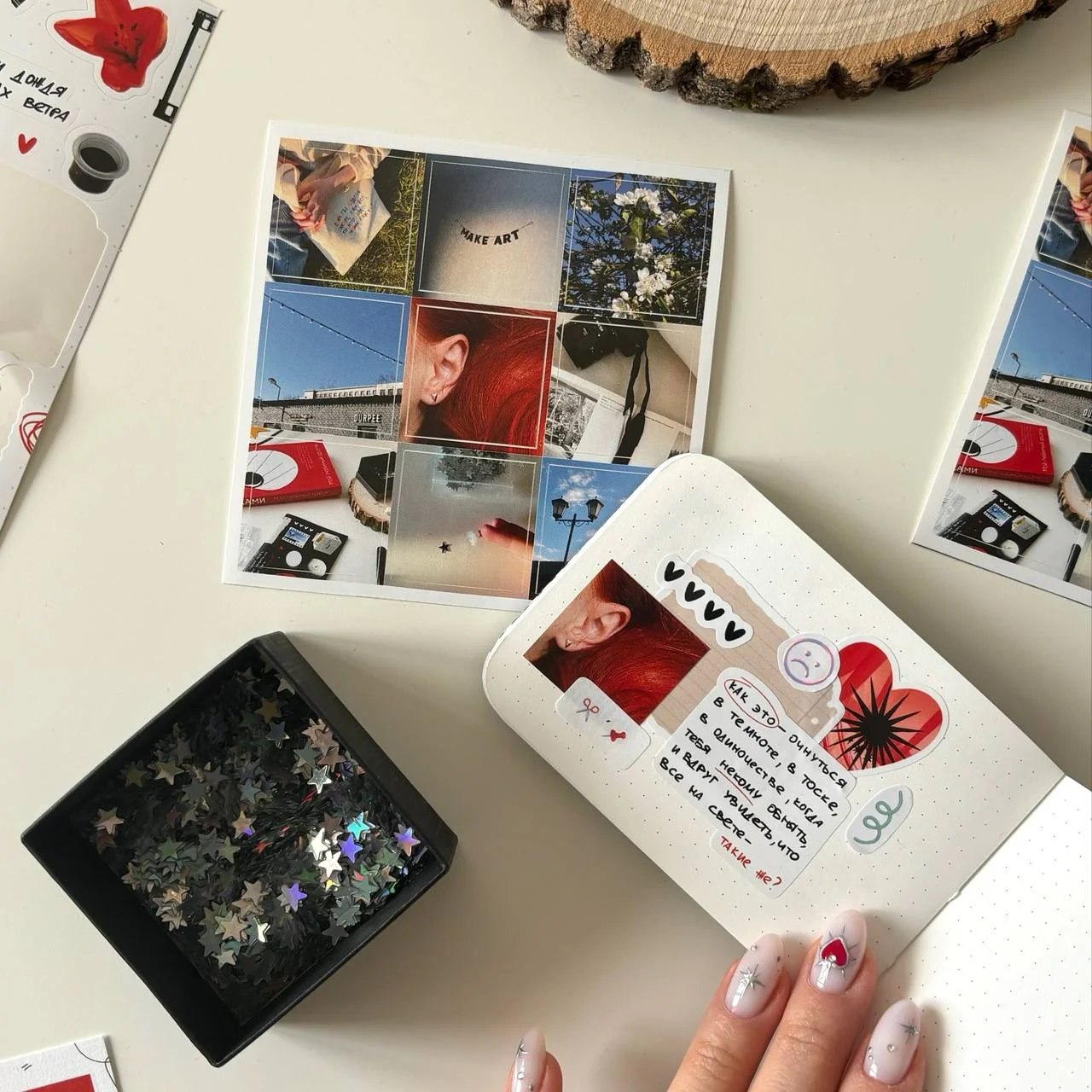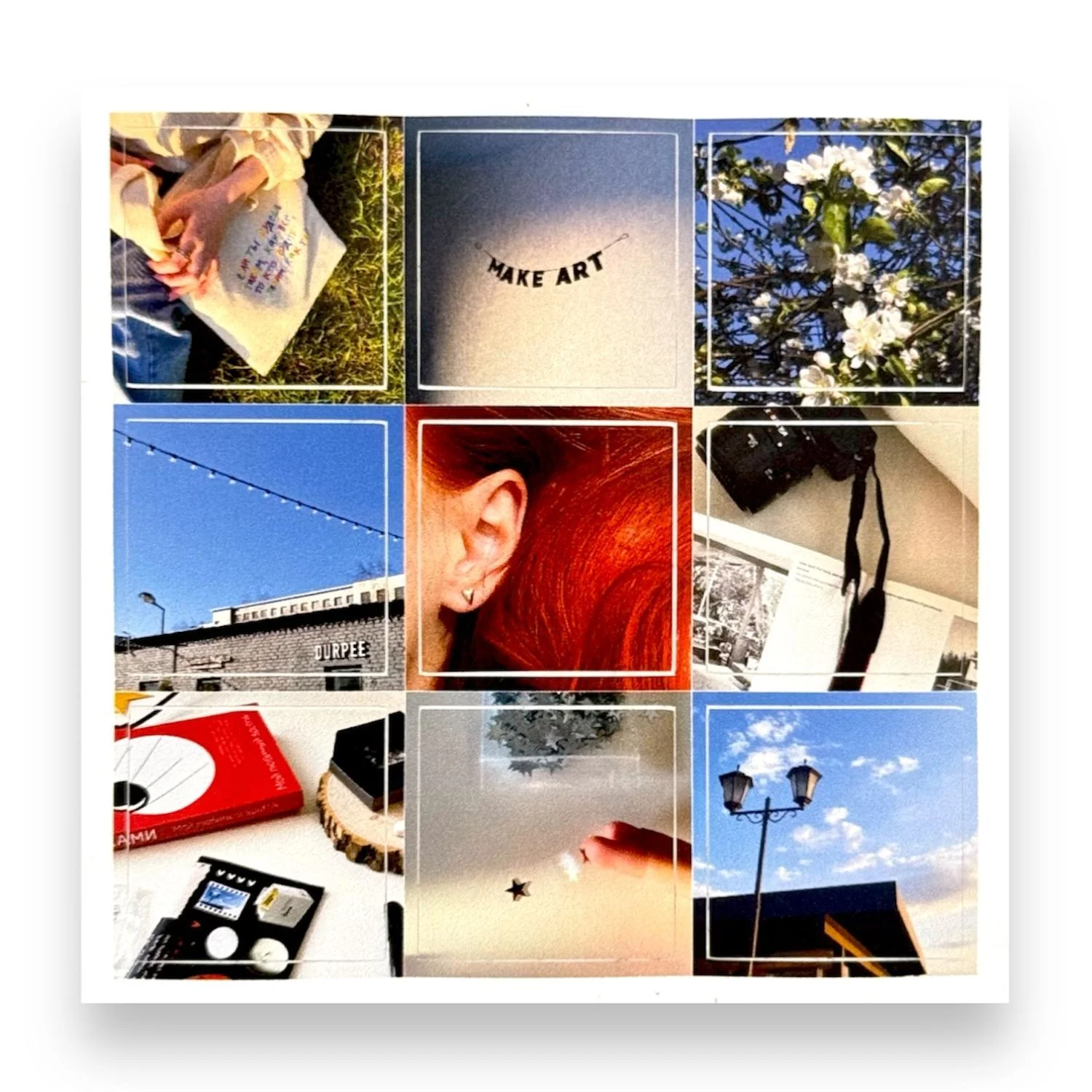 Вырубка по форме всех стикеров, размер 9*9 см, глянцевая виниловая пленка.