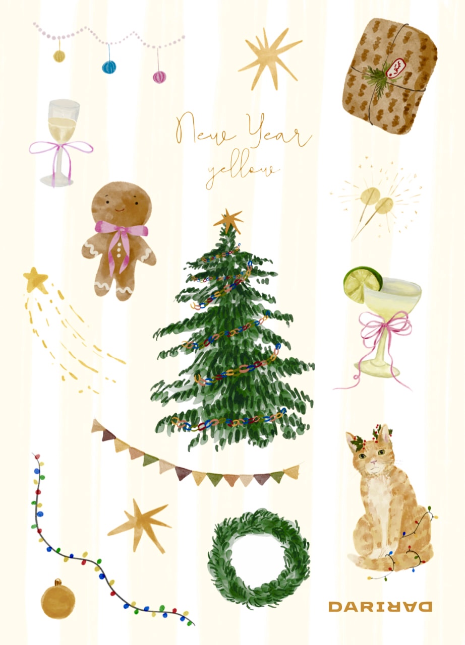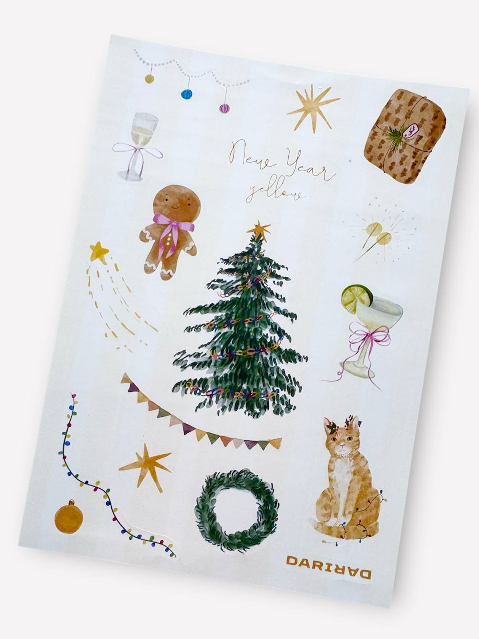 Стикерпак на Новый год «New Year yellow» выполнен в формате А5.