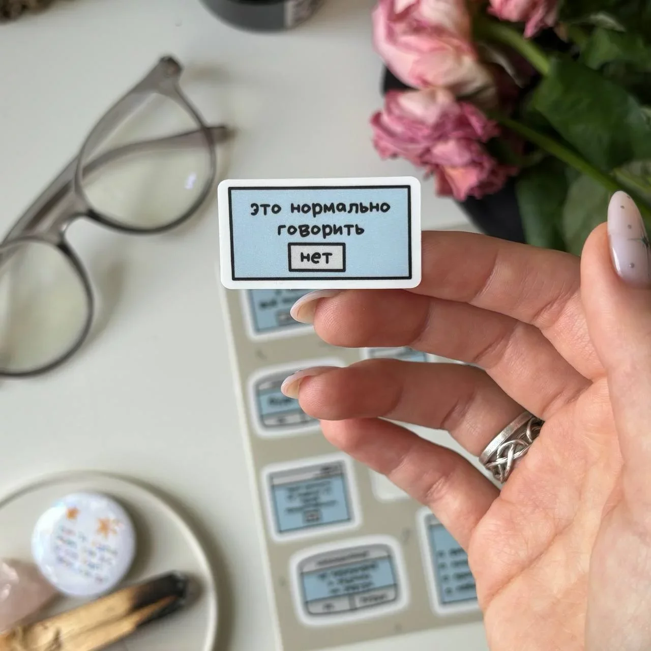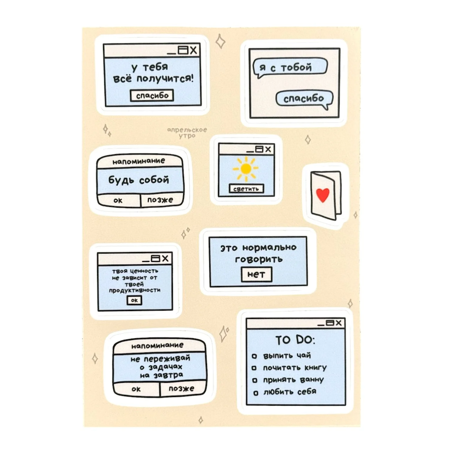 Вырубка по форме всех стикеров, размер А6, матовая виниловая пленка.