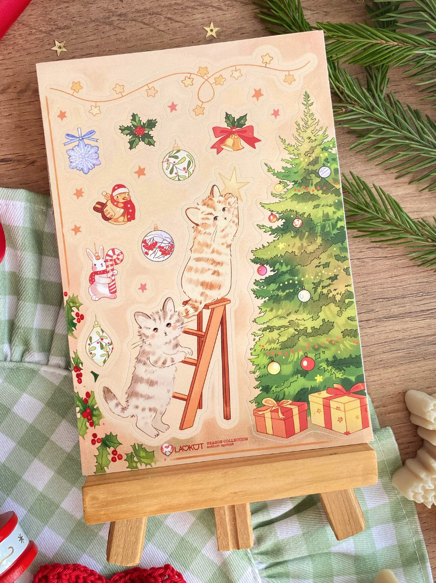 Стикерпак новогодний «Котята, наряжающие ёлочку», А6