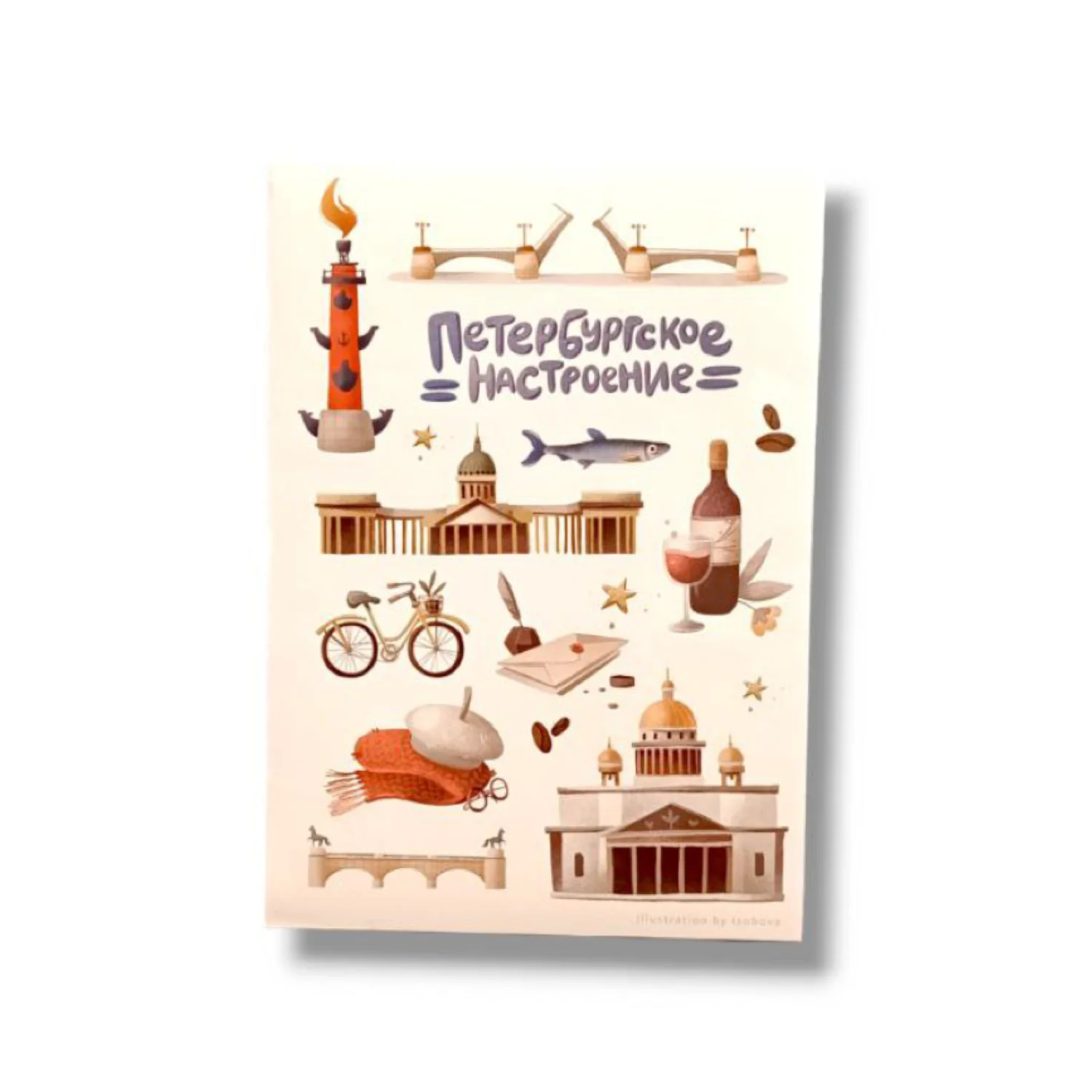Стикерпак с Петербургом от бренда Подписные изделия - уникальная коллекция стикеров, посвященных Санкт-Петербургу. Формат листа - А6, материал - бумага. Каждый стикер вырезан по контуру, что делает их удобными в использовании.