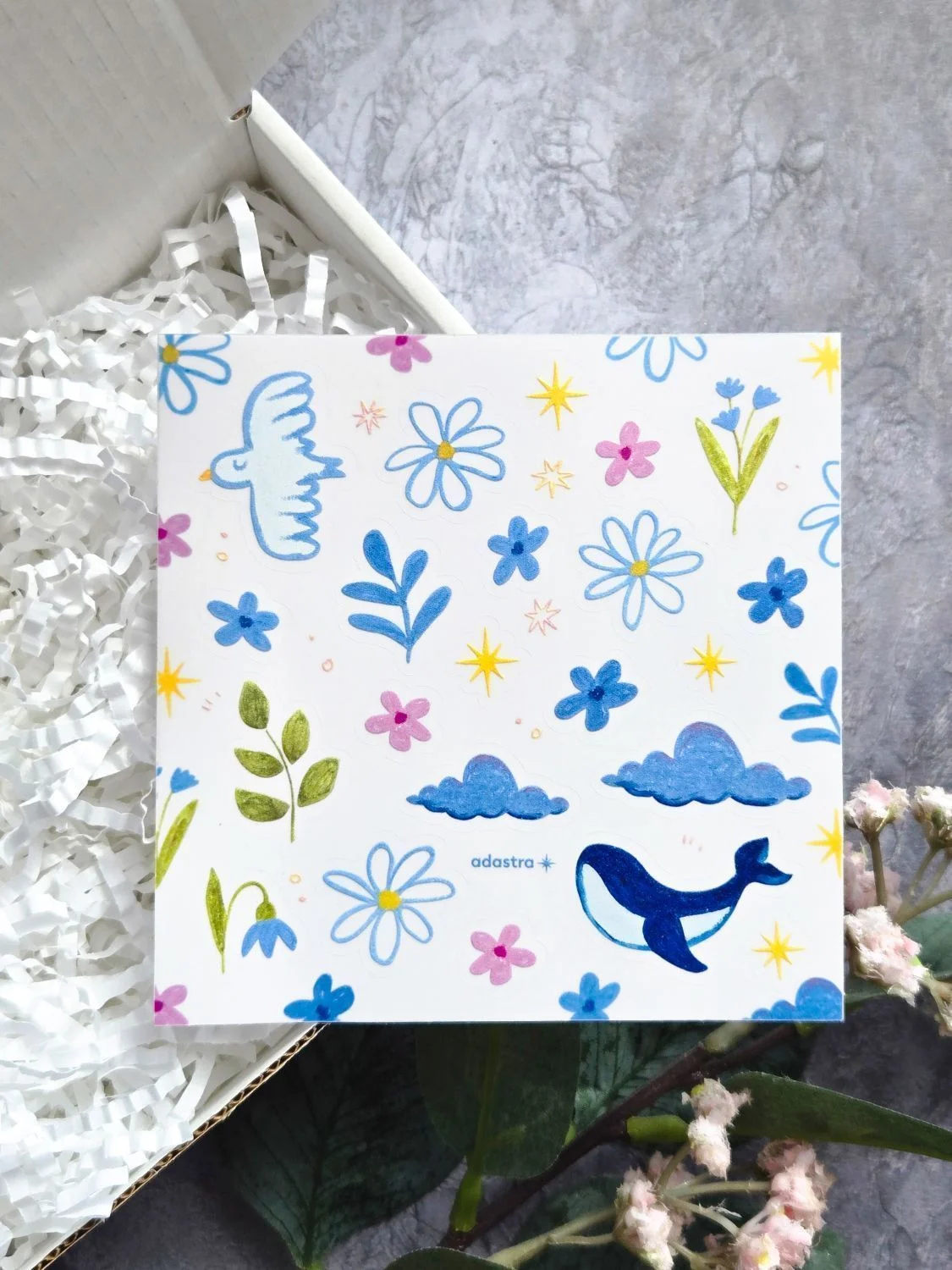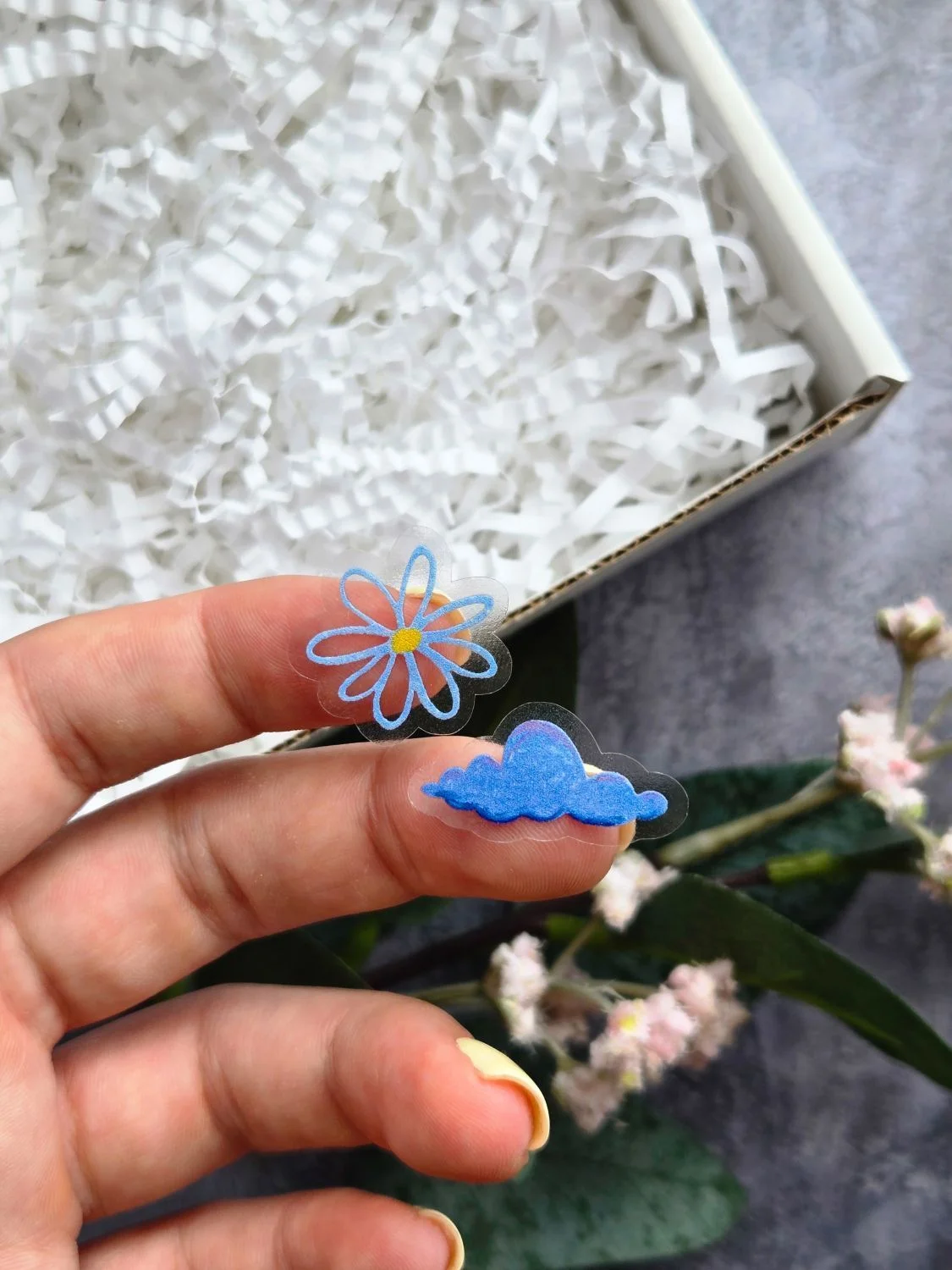 Бумажные самоклеящиеся стикеры с текстурными вертикальными полосками, каждый стикер вырезан по контуру.