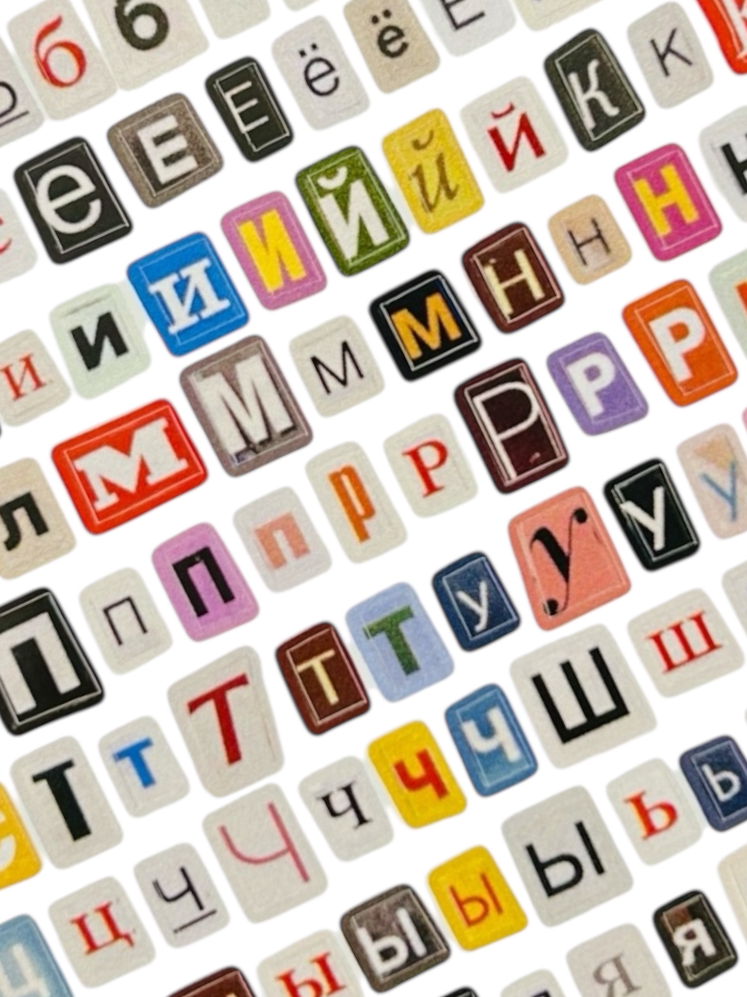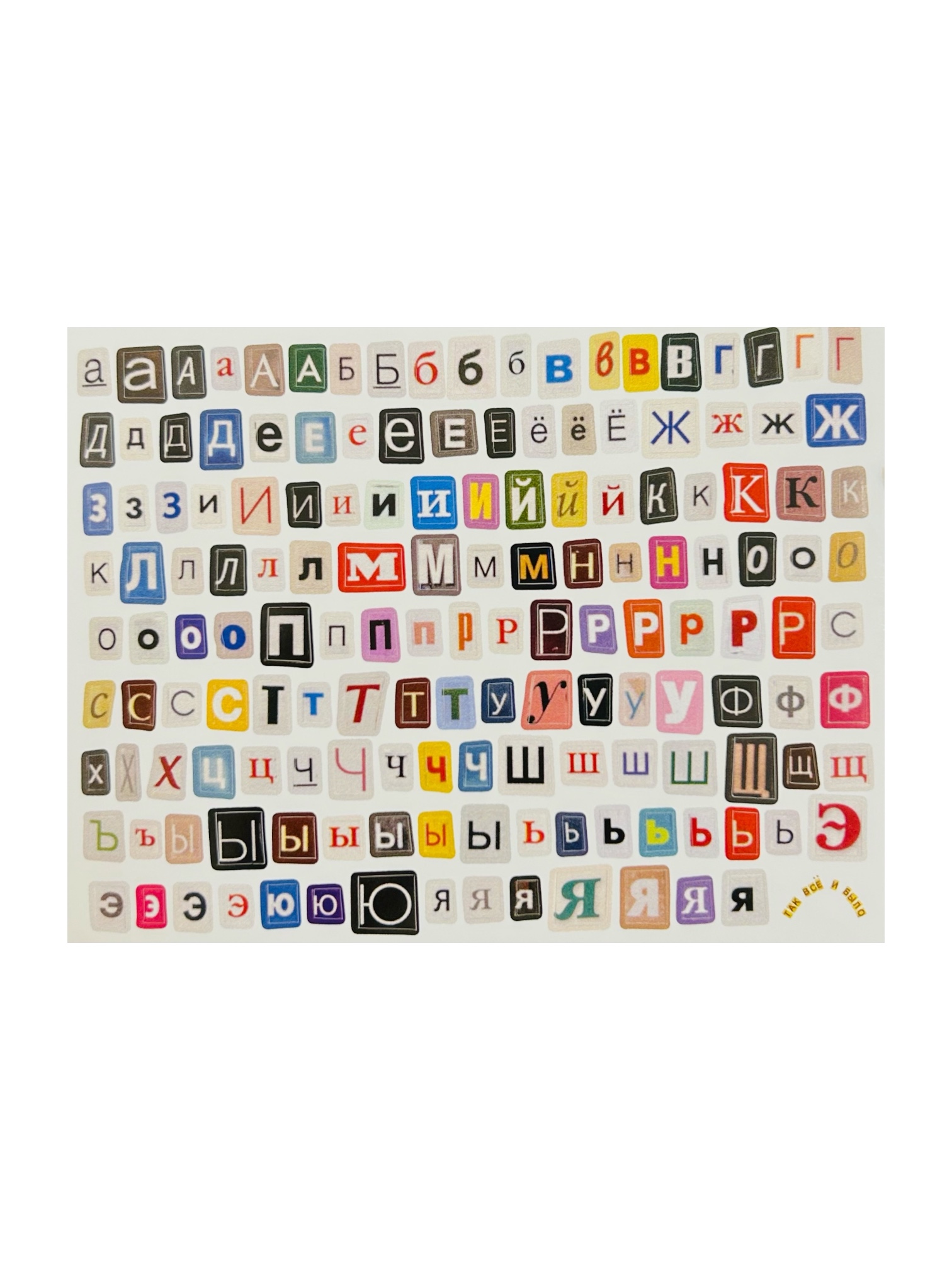 Яркий и стильный стикерпак, состоящий из различных русских букв, выполненных в разноцветных оттенках.